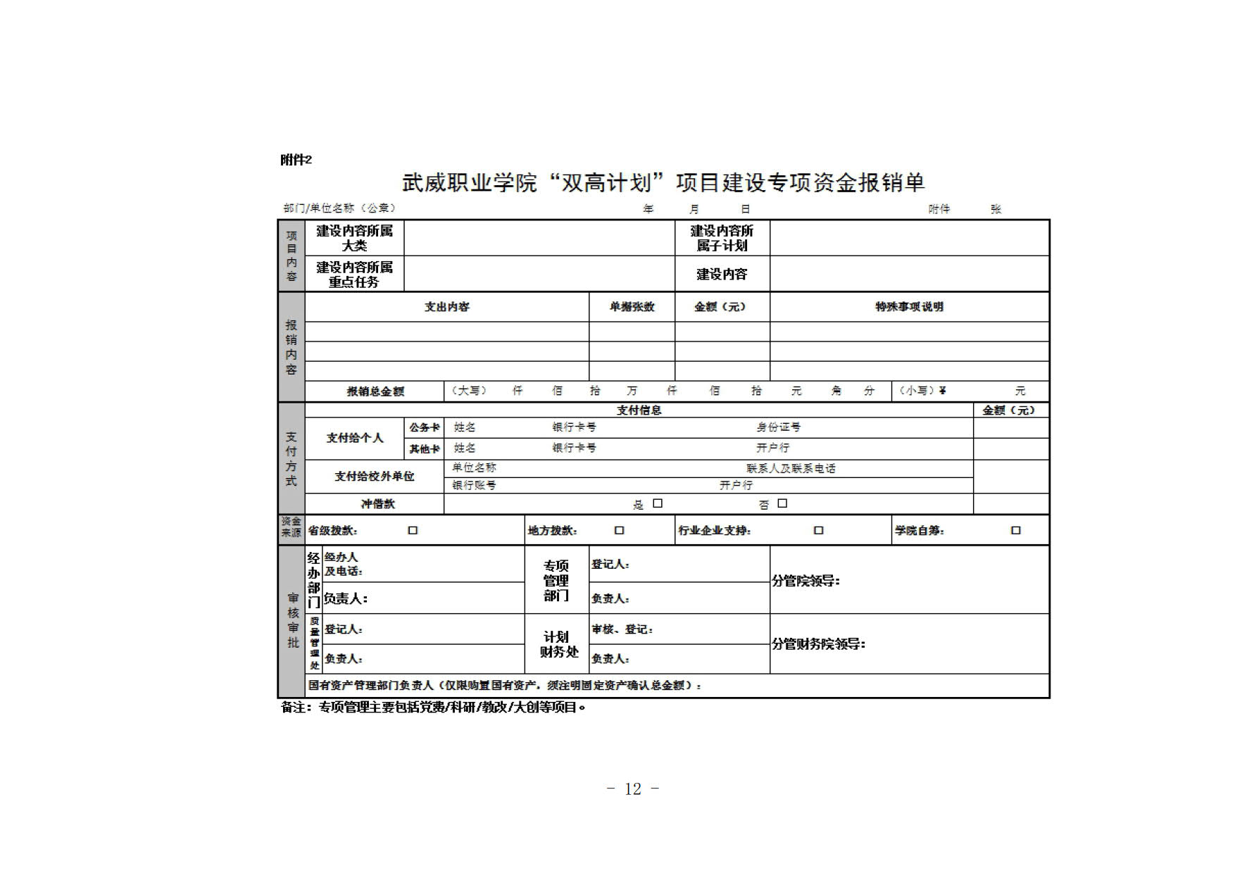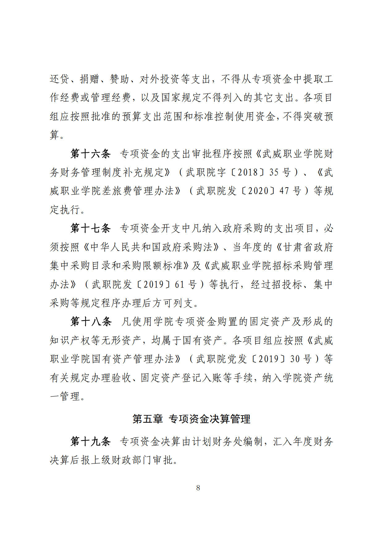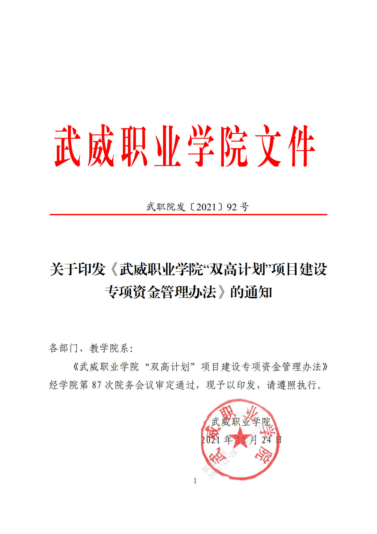 關(guān)于印發(fā)《武威職業(yè)學(xué)院“雙高計劃”項目建設(shè)專項資金管理辦法》的通知