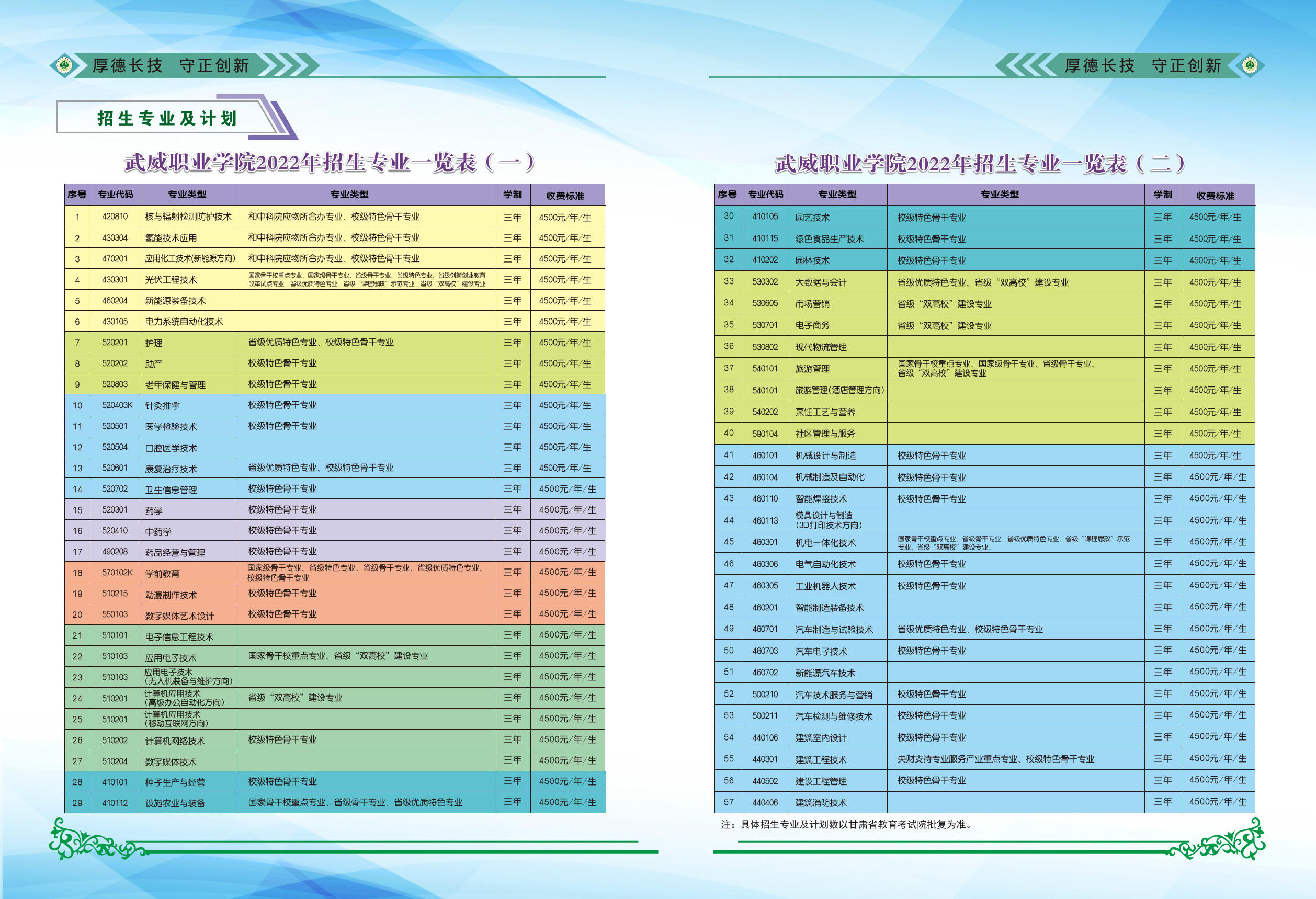 武威職業(yè)學院2022年招生簡章