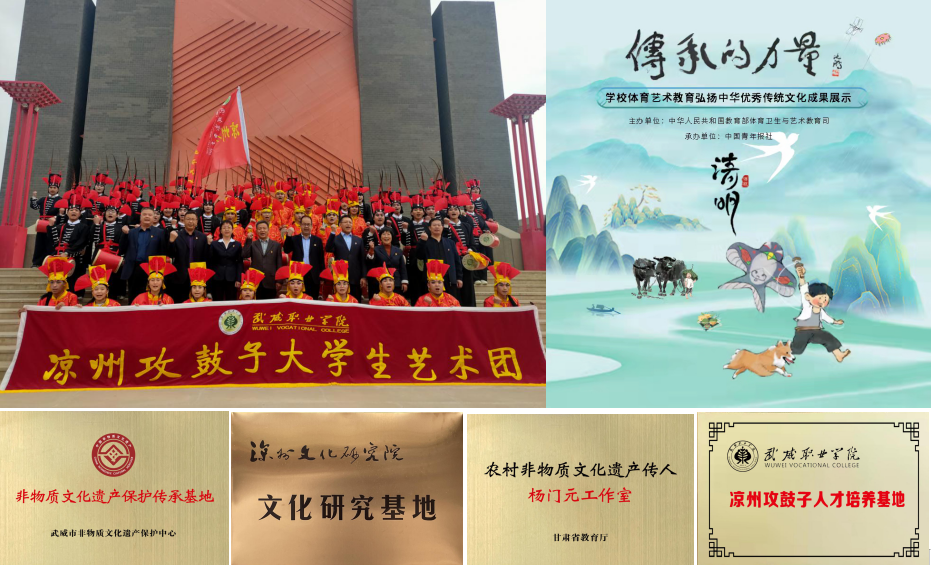 近年來,學(xué)校全力推進(jìn)“雙高計(jì)劃”項(xiàng)目建設(shè),組織成立了武威職業(yè)學(xué)院涼州攻鼓子大學(xué)生藝術(shù)團(tuán),聘請國家級非遺代表性傳承人楊門元親傳技藝,并開展了系列展演活動(dòng),著力打造特色校園文化品牌,助推文化繁榮、社會(huì)文明的新武威和華夏文明傳承創(chuàng)新區(qū)建設(shè),服務(wù)鄉(xiāng)村振興戰(zhàn)略。
