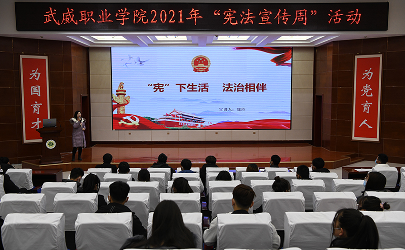 今年12月4日,是我國第八個國家憲法日。學(xué)生發(fā)展中心菁英廳內(nèi),馬克思主義學(xué)院法學(xué)專業(yè)教師魏玲進行了主題為“憲下生活法治相伴”的講座,學(xué)生代表110余人聆聽講座。