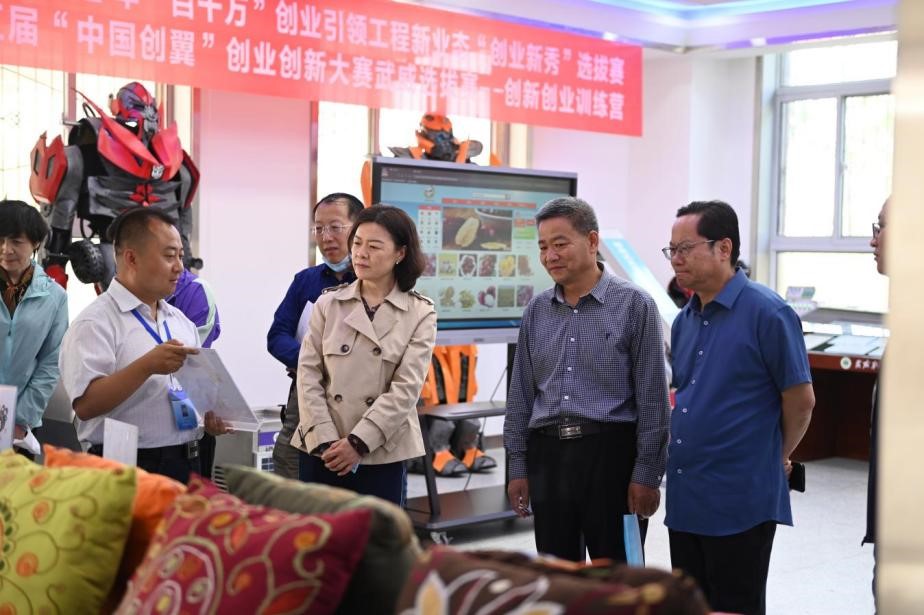 考察組一行還實地走訪了我校雙創(chuàng)中心、中國傳統(tǒng)文化體驗中心和武威市體育場,近距離體驗了我校師生近年來開展創(chuàng)新創(chuàng)業(yè)教育工作成果和部分獲獎作品,詳細了解了實驗(訓(xùn))室建設(shè)成效,并入場參觀武威市體育場建設(shè)情況,對學校近年來建設(shè)省級“雙高計劃”院校、積極申辦職業(yè)技術(shù)大學工作成效給予充分認可。
