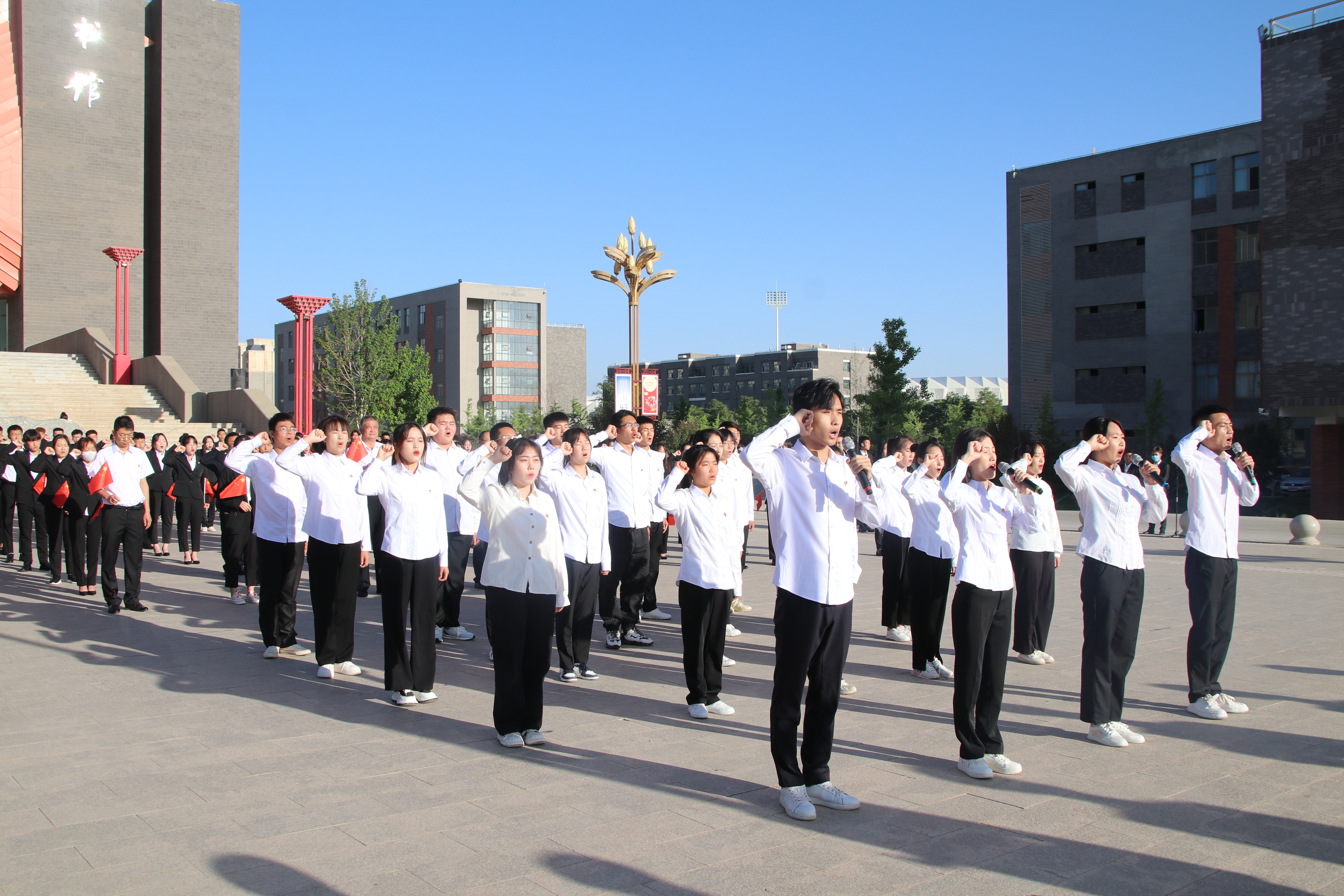 奮斗正當(dāng)時(shí),青春獻(xiàn)給黨!為慶祝中國(guó)共產(chǎn)主義青年團(tuán)成立100周年,5月31日早上,校團(tuán)委在圖書(shū)館前廣場(chǎng)舉辦“喜迎二十大,永遠(yuǎn)跟黨走,奮進(jìn)新征程”主題團(tuán)日活動(dòng)。學(xué)校黨委委員、副校長(zhǎng)王守云出席活動(dòng)并講話(huà),活動(dòng)由校團(tuán)委負(fù)責(zé)人高鵬堂主持。