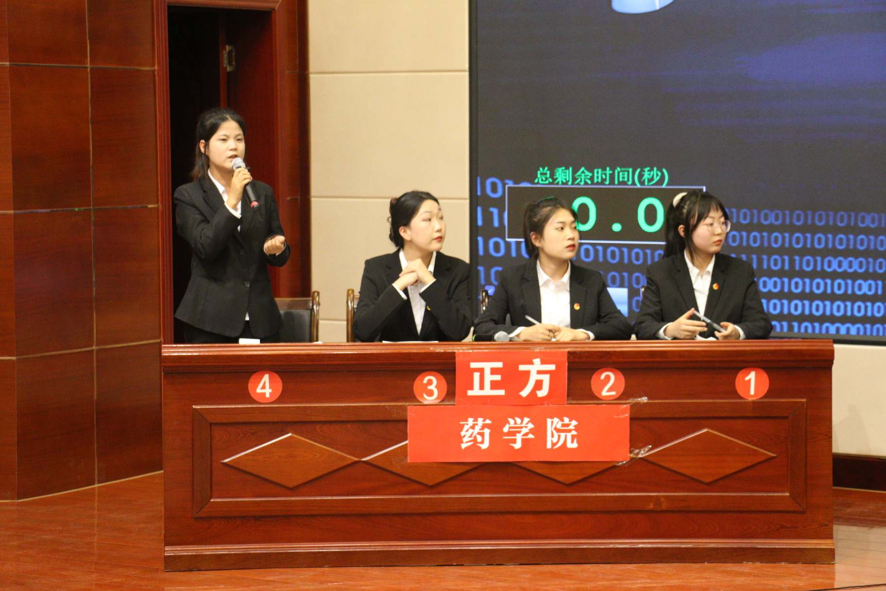 經(jīng)過11場次的比賽,藥學(xué)院代表隊和護理學(xué)院代表隊進入最后決賽。決賽現(xiàn)場,正反雙方針對誠信主要靠“他律”還是主要靠“自律”拉開激烈交戰(zhàn)。雙方辯手圍繞辯題你來我往、侃侃而談、針鋒相對,卻不失風(fēng)度;立論階段,旁征博引,攻辯階段雙方辯手“激烈廝殺”;自由辯論環(huán)節(jié),辯論雙方的金句妙言、據(jù)理力爭、滔滔不絕將比賽氣氛推向高潮,贏得在場聽眾的陣陣掌聲。