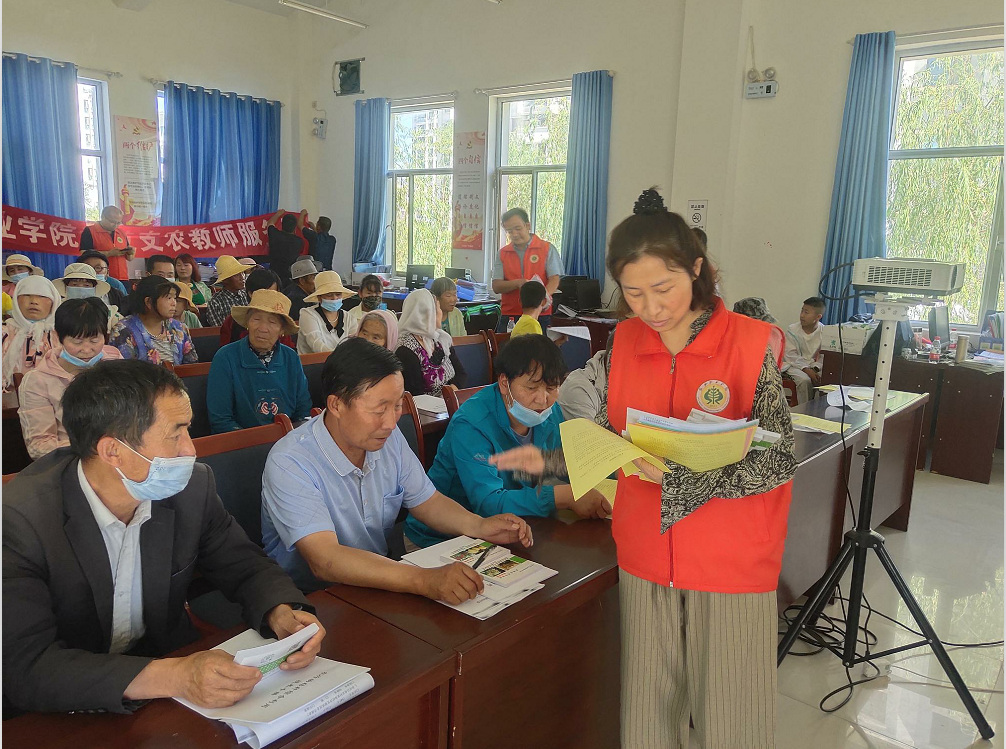 科技支農(nóng)教師服務團現(xiàn)場發(fā)放《武威市林果產(chǎn)業(yè)種植技術(shù)手冊》《武威市藥材種植技術(shù)手冊》《武威市日光溫室綠色蔬菜高效生產(chǎn)技術(shù)手冊》《食用菌、馬鈴薯種植關(guān)鍵技術(shù)手冊》《中藥材栽培及病蟲害防治宣傳冊》《農(nóng)作物秸稈綜合利用技術(shù)手冊》《畜禽糞污廢棄物資源化利用技術(shù)》540冊。
