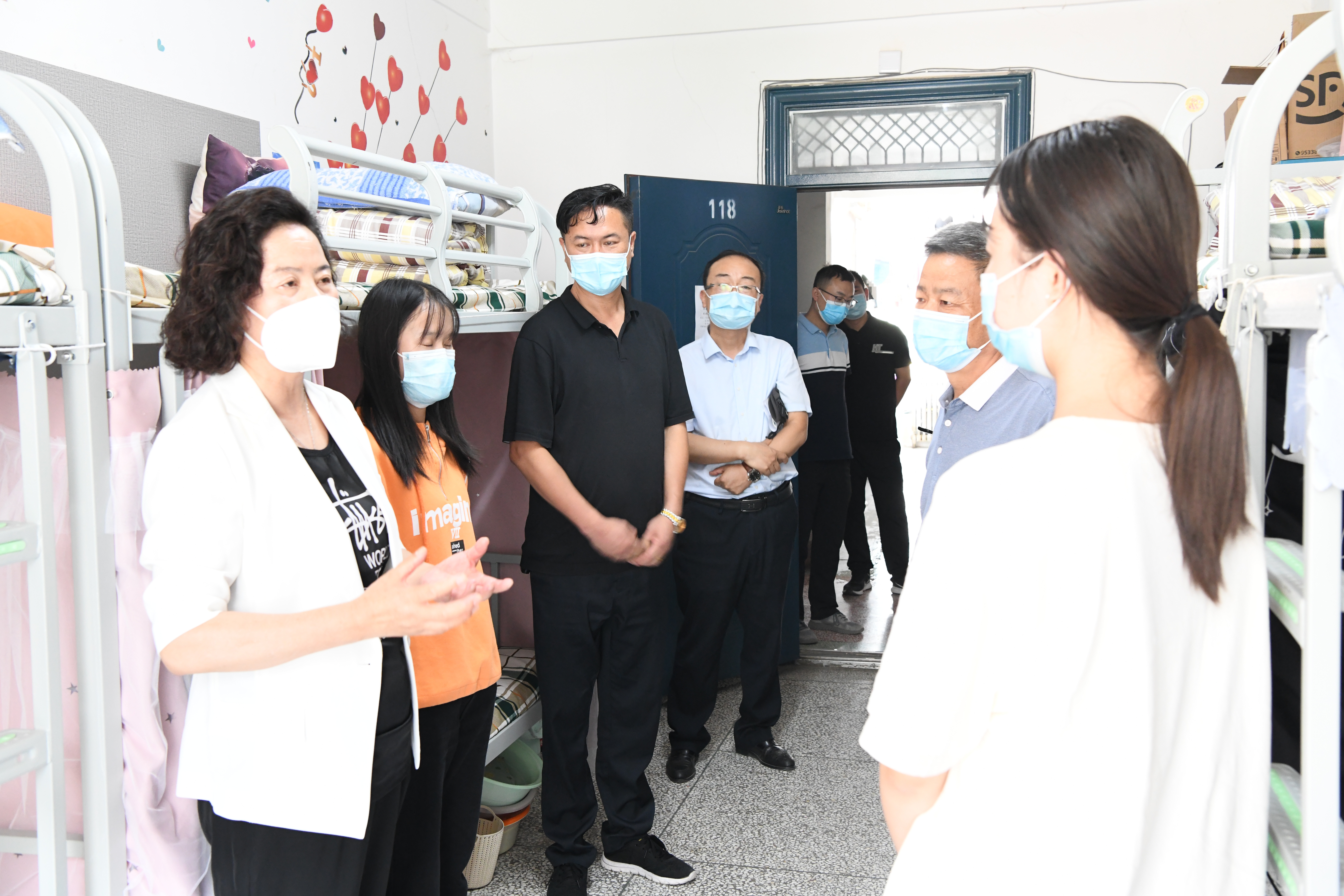 7月19日上午,副市長柳生墜在市教育局黨組書記、局長馬生威陪同下到學校調研指導疫情防控工作,看望留校實習學生。