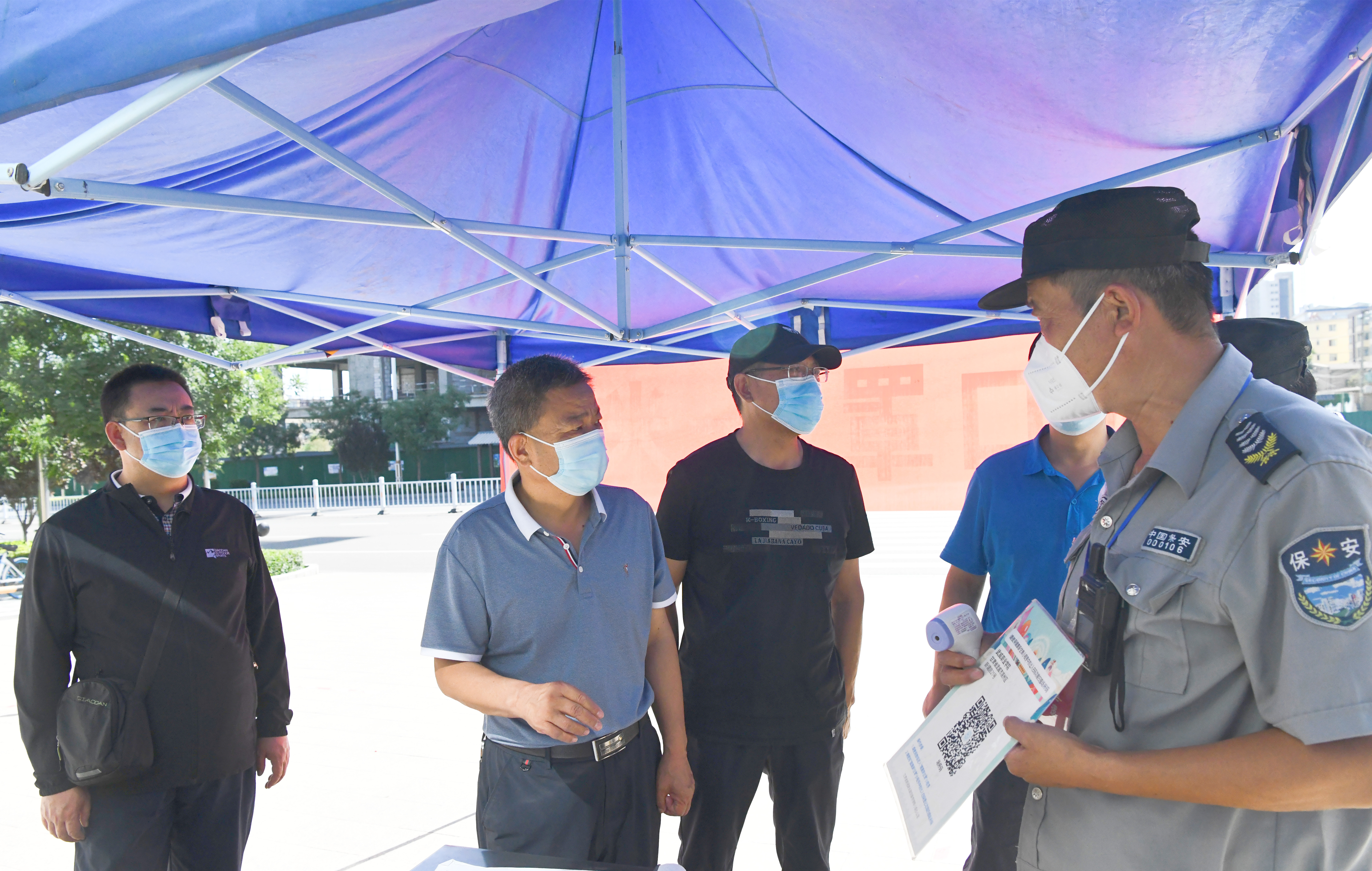在核酸檢測(cè)現(xiàn)場(chǎng),趙明詳細(xì)了解學(xué)校核酸檢測(cè)采集點(diǎn)設(shè)置、流程安排、服務(wù)保障、人員安排、應(yīng)急措施等具體情況,親切慰問現(xiàn)場(chǎng)醫(yī)護(hù)人員、工作人員和志愿者。他指出,核酸檢測(cè)是落實(shí)“早發(fā)現(xiàn)”的首要舉措,是精準(zhǔn)防控的重要環(huán)節(jié),是有效降低傳播風(fēng)險(xiǎn)的重要抓手。要組織好校內(nèi)人員全員核酸檢測(cè),做好現(xiàn)場(chǎng)秩序維護(hù)分類、分批組織人員參加核酸檢測(cè),嚴(yán)格落實(shí)戴口罩、“一米線”、環(huán)境消殺等防控措施,防止人員扎堆聚集。要做實(shí)做細(xì)各項(xiàng)服務(wù)保障工作,減少排隊(duì)等待時(shí)間,做好防曬措施,為一線工作人員和參檢人員創(chuàng)造更加良好的環(huán)境。