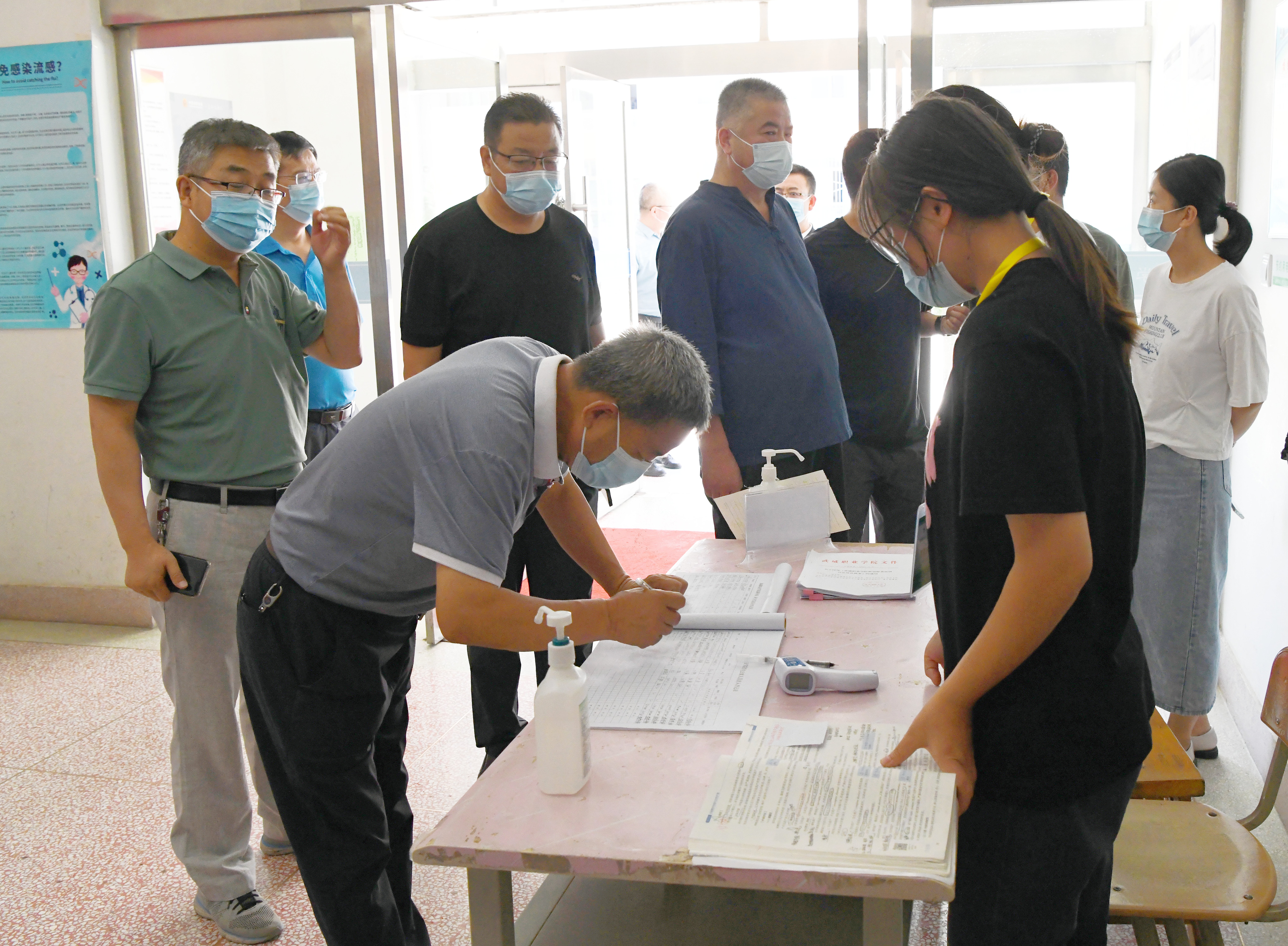 趙明一行在學(xué)校東大門現(xiàn)場(chǎng)查看了進(jìn)入人員體溫測(cè)量、一碼三查查驗(yàn)和進(jìn)出車輛管控情況,強(qiáng)調(diào)大門是學(xué)校疫情防控的第一道關(guān)口,值守人員必須嚴(yán)格按照上級(jí)要求和學(xué)校防控安排,嚴(yán)格落實(shí)各項(xiàng)管控措施,杜絕疫情輸入,確保校園安全穩(wěn)定。