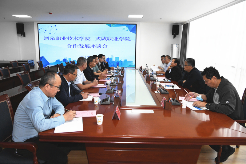 易志軍一行先后到學校紅色文化藝術館、翟存祥思想政治理論課名師工作室、武威市體育場、旅游管理專業(yè)實訓室等地考察并在能源科技樓811會議室召開了兩校合作發(fā)展座談會,趙明向易志軍一行詳細介紹了學校近年來改革發(fā)展、人才培養(yǎng)、招生就業(yè)、合作辦學、“雙高計劃”學校建設等情況。易志軍就酒泉職業(yè)技術學院建設發(fā)展情況進行了詳細介紹。雙方就河西走廊職業(yè)教育與區(qū)域產(chǎn)業(yè)互動發(fā)展、融合發(fā)展、高質(zhì)量發(fā)展的路徑和方法進行了深入探討,并交流了學校建設和管理方面好的經(jīng)驗和做法。