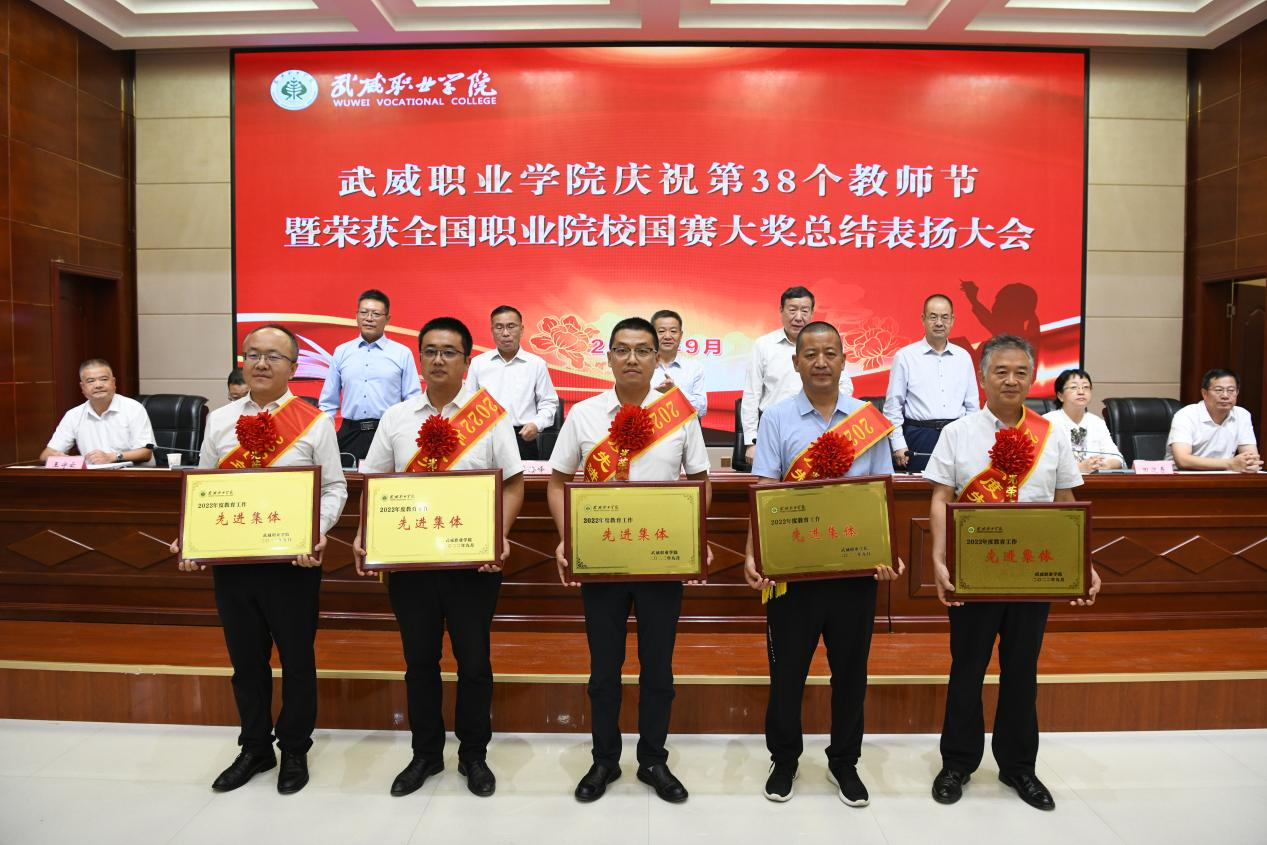 學校領導分別宣讀了《武威職業(yè)學院關于表揚2022年教育工作先進集體和先進個人的決定》《武威職業(yè)學院關于認定(聘任)2022年“教書育人楷?!薄敖虒W名師”“教學能手”“教學新秀”“我最喜愛的老師”和“專業(yè)(學科)帶頭人”的決定》。楊存忠、李海峰和學校領導分別為獲獎者代表頒發(fā)榮譽證書。