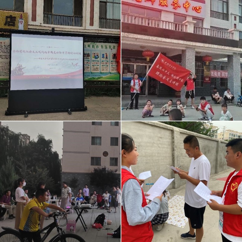 為深入學習習近平總書記在慶祝中國共產(chǎn)主義青年團成立100周年大會上的重要講話精神,貫徹落實黨的十九屆六中全會精神和省第十四次黨代會精神,引導和幫助廣大青年學生上好與現(xiàn)實相結合的“大思政課”,在社會課堂中“受教育、長才干、作貢獻”,堅定信念聽黨話、跟黨走,迎接黨的二十大勝利召開,由翟存祥名師工作室指導的“習近平新時代中國特色社會主義思想學習社”的大學生積極組建理論普及宣講團,開展理論普及宣講活動。
