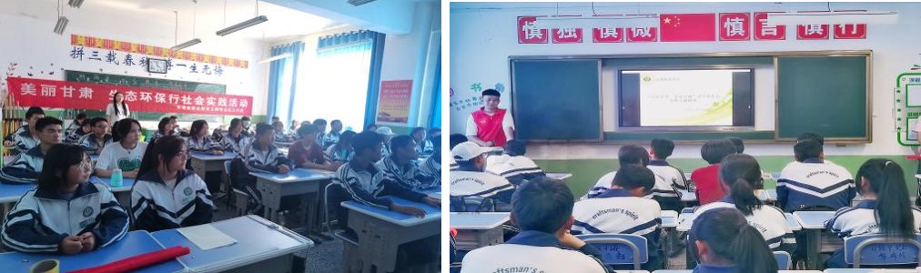 團(tuán)隊成員在天祝職業(yè)中專教務(wù)處主任張健瑞教師的指引來到21級3班,志愿者通過播放PPT向同學(xué)們宣講了生態(tài)環(huán)保的重要性以及國家對于生態(tài)環(huán)保的做出工作部署及法律法規(guī),并且向同學(xué)們進(jìn)行提問了生態(tài)環(huán)保知識、發(fā)放了調(diào)查問卷。