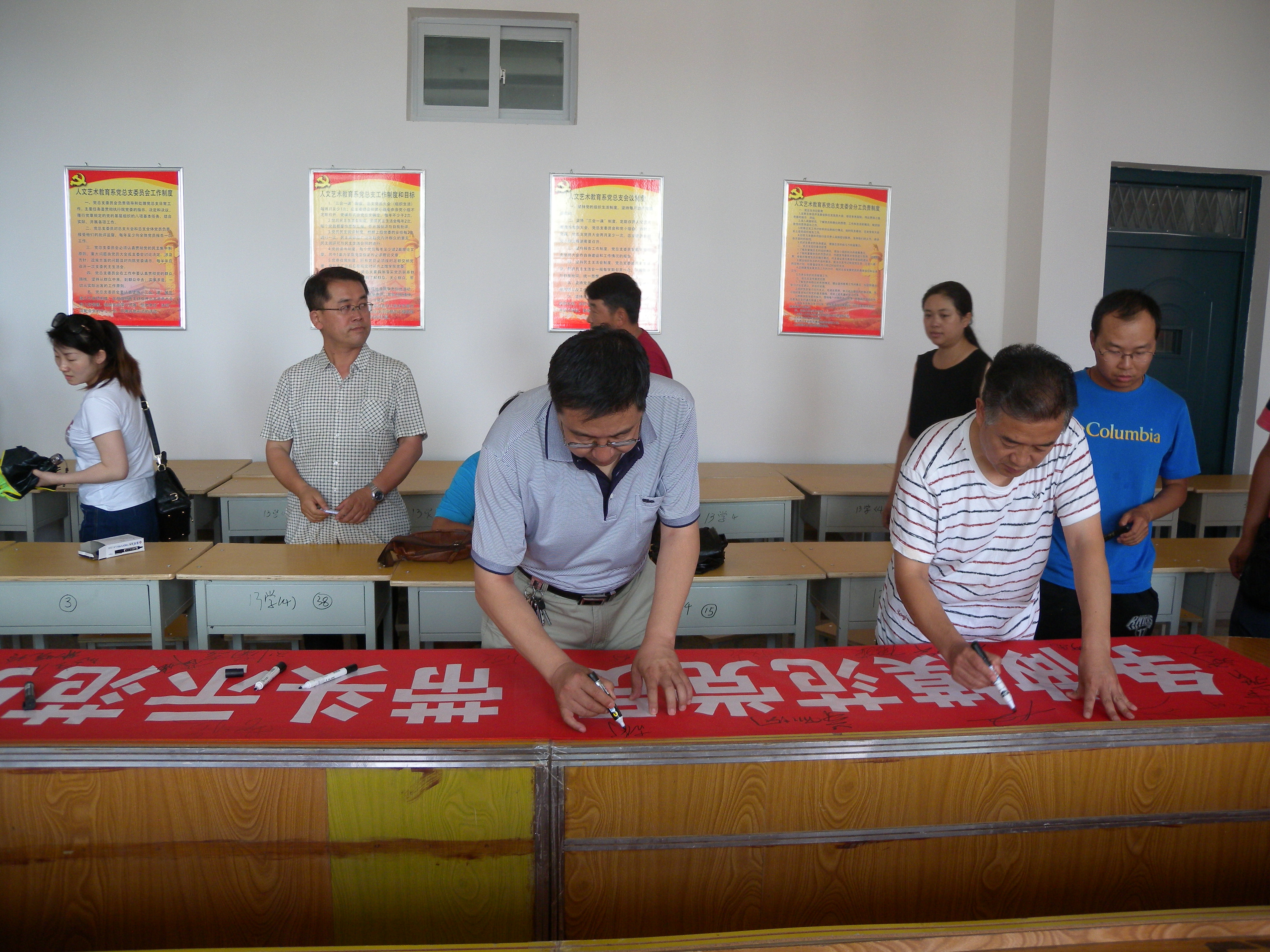根據(jù)學(xué)院黨委慶“七一”系列活動方案,人文藝術(shù)教育系黨總支于7月4日下午在勵勤樓403黨員活動室開展了“爭做模范黨員,帶頭示范引領(lǐng)” 師生黨員簽名活動。