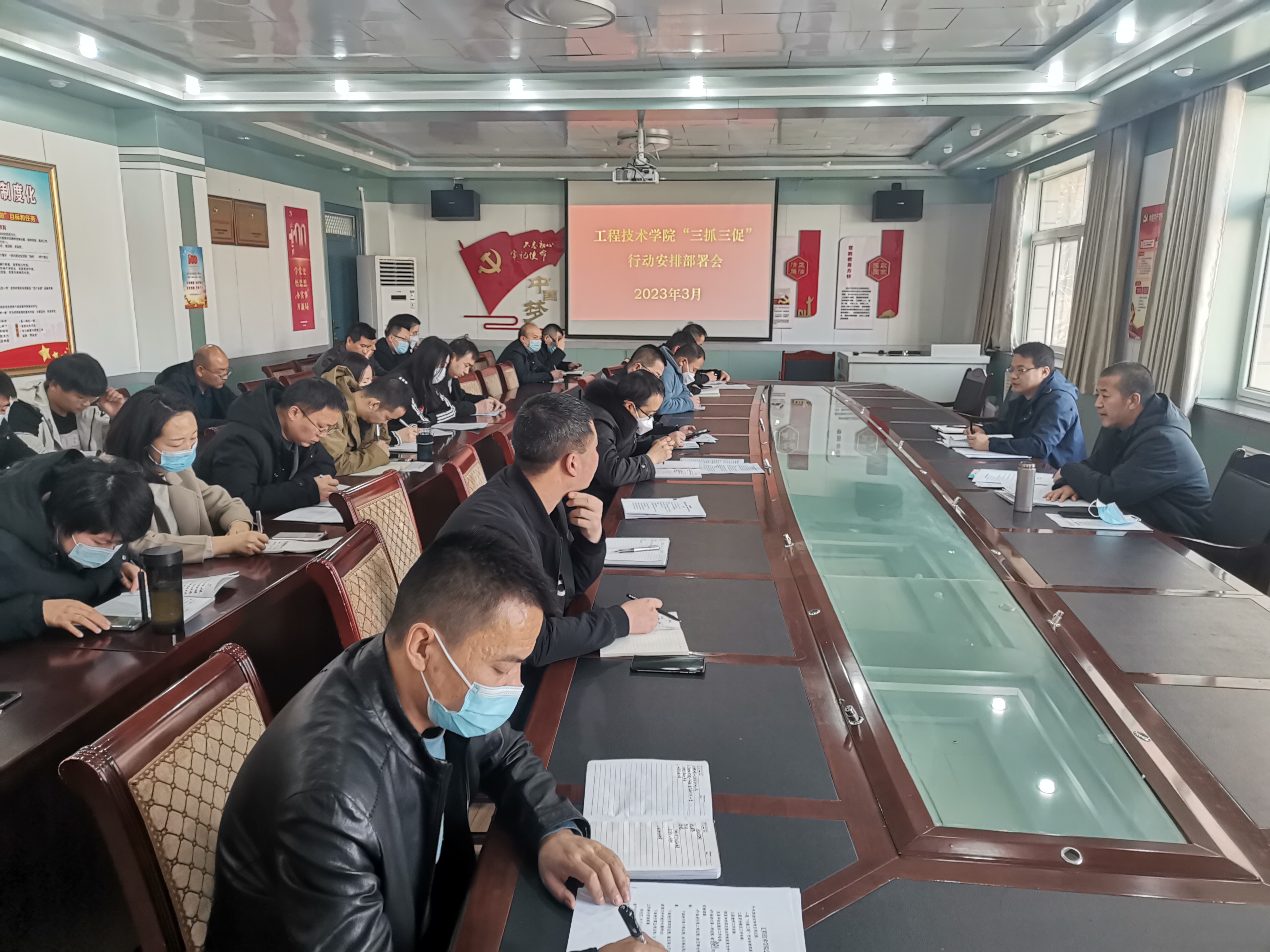 3月3日下午,工程技術學院召開“三抓三促”行動動員部署會,深入學習貫徹黨的二十大精神,全面落實習近平總書記對甘肅重要講話重要指示批示精神,統(tǒng)籌推進學院“三抓三促”行動,會議由黨總支書記梁忠主持。