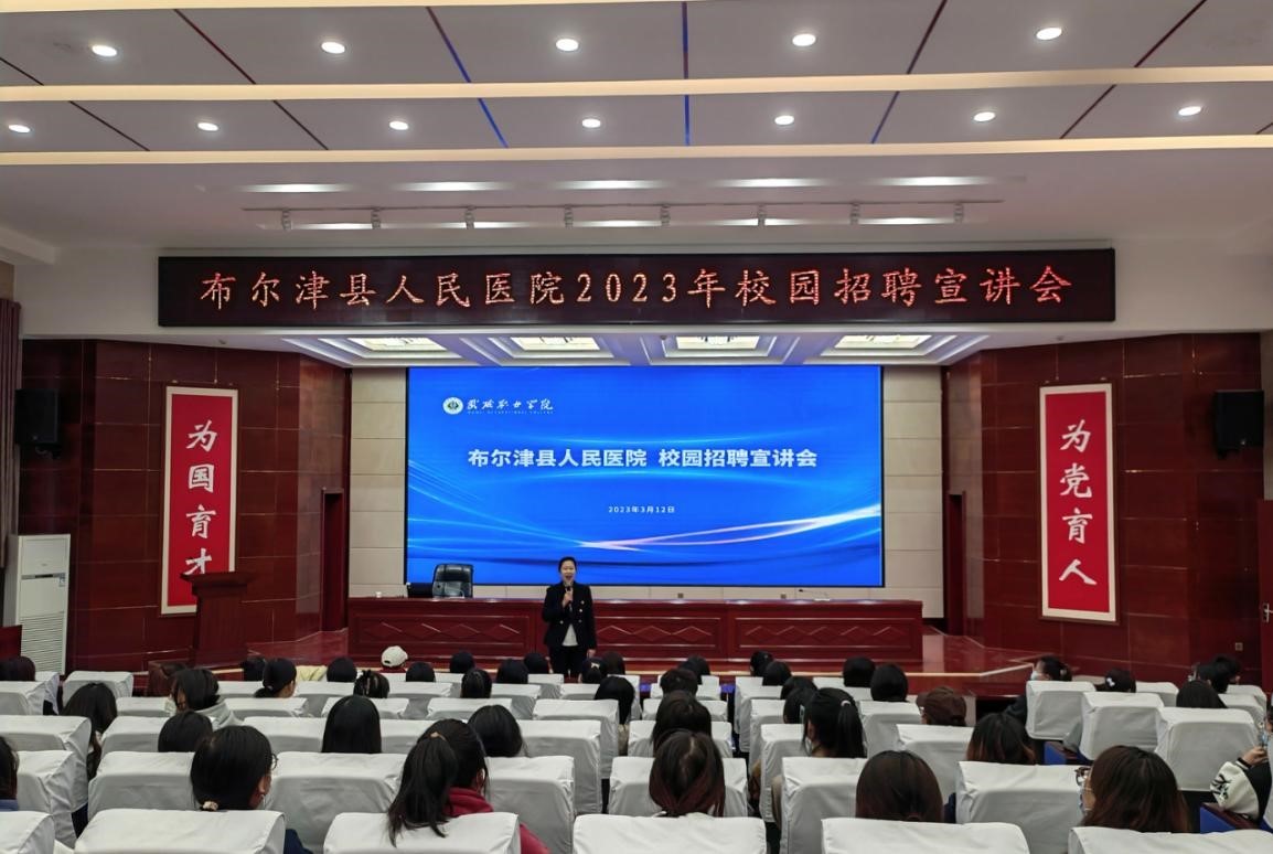 3月12日簽約儀式結(jié)束后,布爾津縣人民醫(yī)院黨委書(shū)記李娟在學(xué)生發(fā)展中心舉行了校園招聘宣講活動(dòng),護(hù)理學(xué)院約200名師生參加,部分學(xué)生現(xiàn)場(chǎng)達(dá)成實(shí)習(xí)就業(yè)意向。