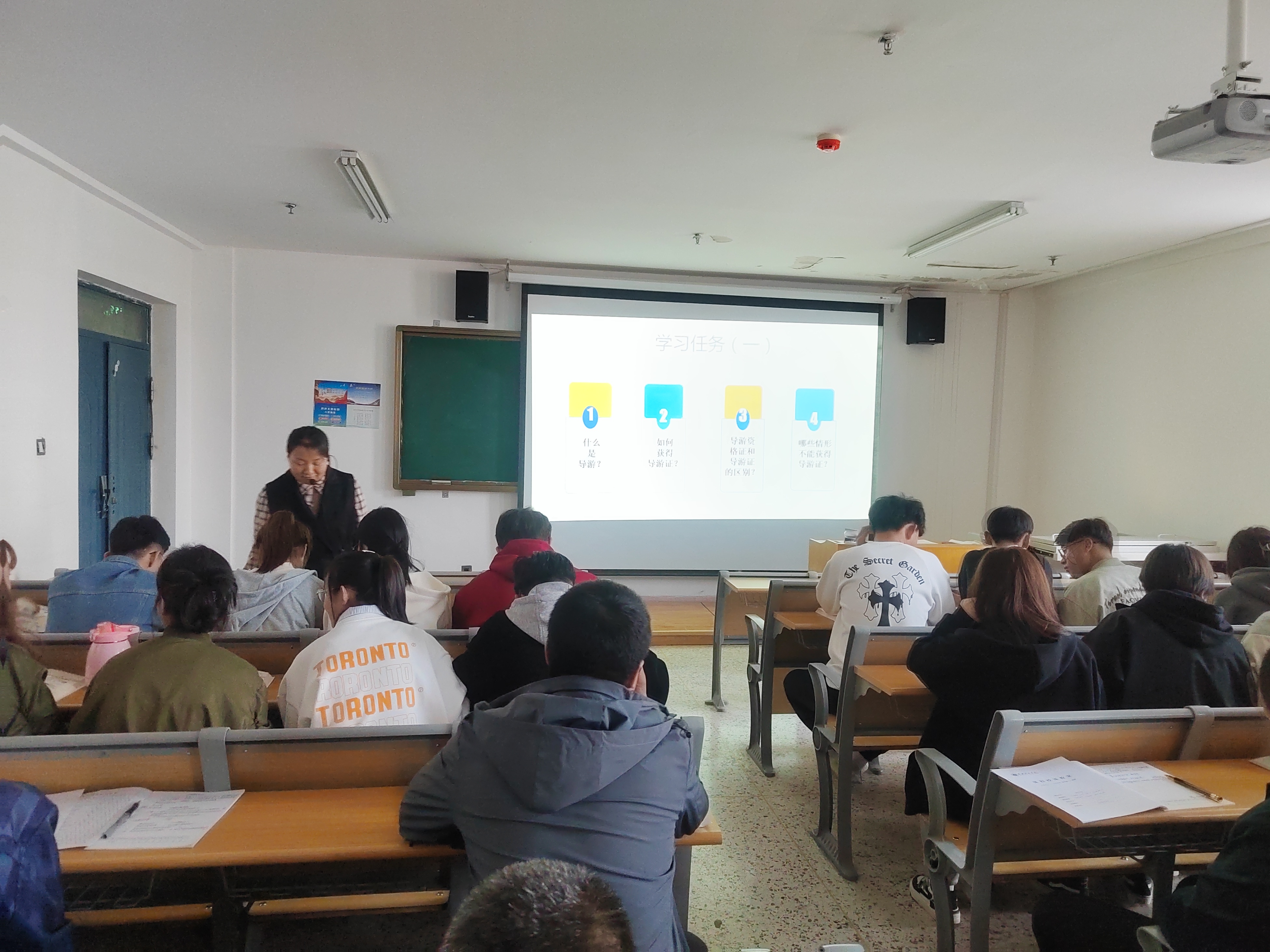 旅游教研室教師孔玉玲以《導(dǎo)游管理法律制度》為主題,帶領(lǐng)2022級旅游管理大專班學(xué)生為大家奉上了一堂精彩的研討課。整個過程在課程思政理念的指導(dǎo)下,以“某旅行社委派無證導(dǎo)游帶團造成嚴重后果”引入課題,激發(fā)學(xué)生興趣,緊接著圍繞課程導(dǎo)入案例,采用講授法、討論法、任務(wù)驅(qū)動法等多元化的教學(xué)方式,將課程教學(xué)內(nèi)容與思政元素?zé)o縫銜接,實現(xiàn)了顯性培育與隱性熏陶的完美融合,取得了良好的教學(xué)效果。