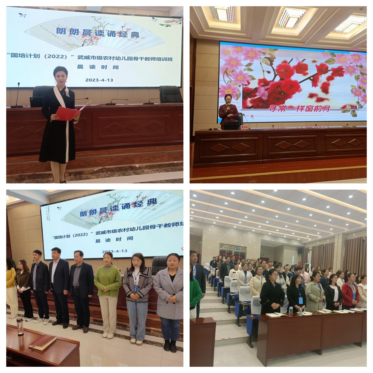 相約晨光,不負韶華。每天的培訓從元氣滿滿的“郎朗晨讀誦經(jīng)典”開始,袁潔、趙穎等老師作為領(lǐng)讀人帶領(lǐng)全體學員誦讀詩詞、經(jīng)典名篇。袁潔老師領(lǐng)讀的《涼州詞》、趙穎老師領(lǐng)讀的《祖國啊,我親愛的祖國》,時而豪邁,時而溫婉,讓培訓學員感受到與眾不同的浸潤式培訓體驗。