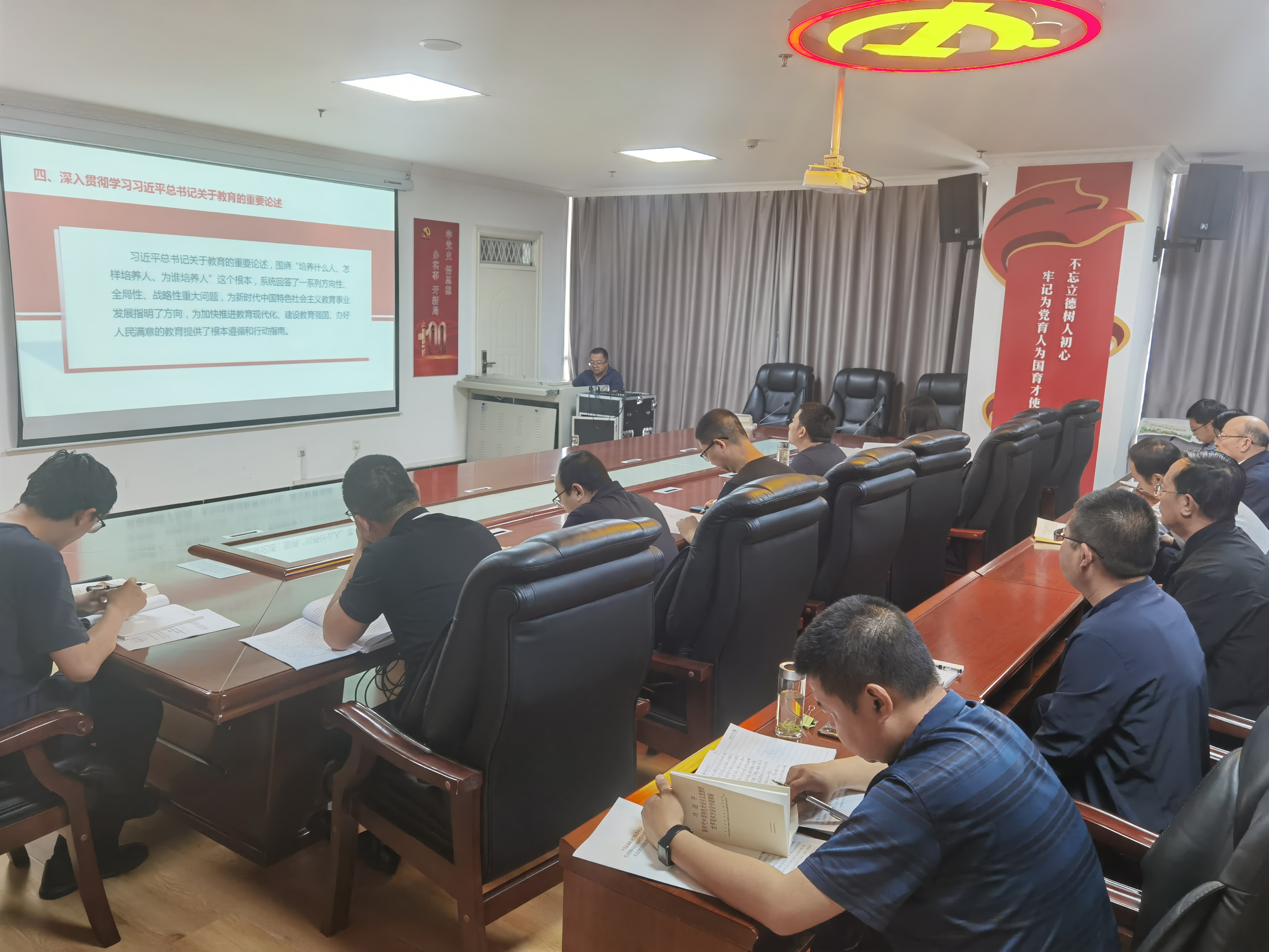 5月30日下午,行政第二黨支部書記魏全民在810會議室以《學(xué)習(xí)新思想 奮進(jìn)新征程 建功新時代》為題,并結(jié)合個人學(xué)思踐悟和教育教學(xué)工作實(shí)際,講授學(xué)習(xí)貫徹習(xí)近平新時代中國特色社會主義思想主題教育專題黨課,行政第二黨支部全體黨員參加。