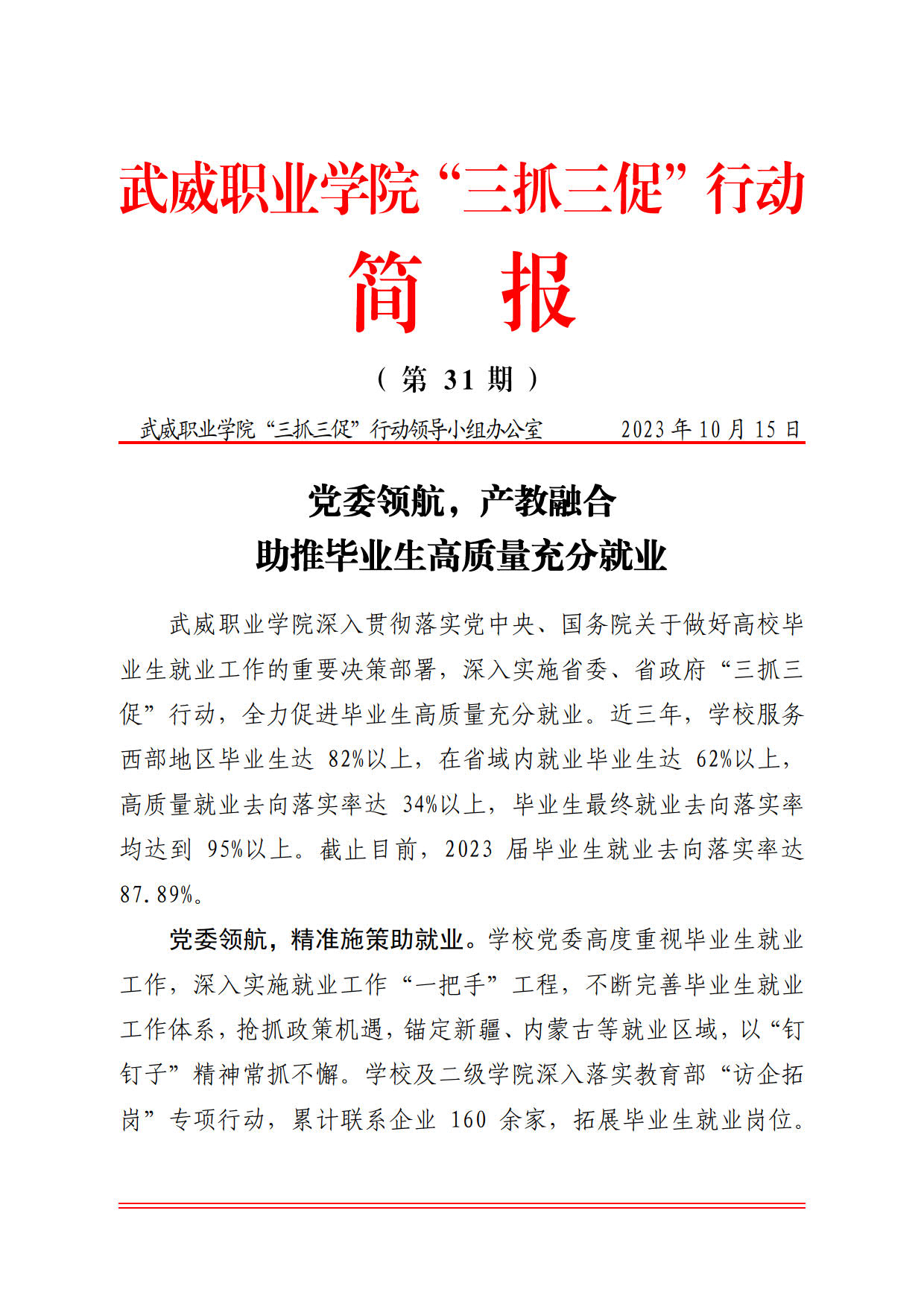 簡報第31期:黨委領航、產教融合,助推畢業(yè)生高質量充分就業(yè)