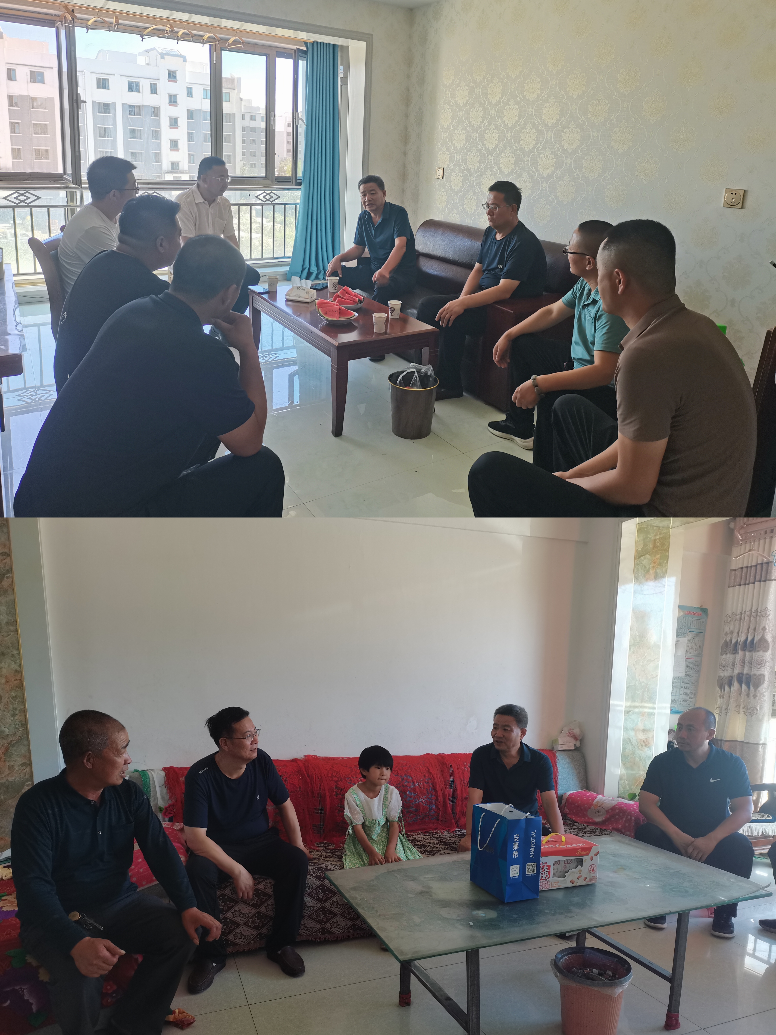 7月29日下午,學(xué)校黨委書記、校長趙明教授,黨委委員、副校長張開禮教授帶領(lǐng)幫扶辦、駐村工作隊隊員在橫梁鄉(xiāng)走進(jìn)各自結(jié)對關(guān)愛的困難群眾家中,面對面拉家常,詳細(xì)了解特殊困難群眾個人健康、經(jīng)濟收入、生活近況、醫(yī)療保障、孩子教育等方面情況,做到底子清、情況明。手拉手講困難,對簡單訴求當(dāng)場協(xié)調(diào)解決,確保群眾反映的小事、急事第一時間辦理,對無法當(dāng)場解決的,及時耐心做好解釋工作,制定切實可行、行之有效的幫扶計劃,跟進(jìn)落實關(guān)愛幫扶措施。關(guān)愛活動結(jié)束后,校領(lǐng)導(dǎo)督導(dǎo)了駐村工作隊近期工作,開展“夏送清涼”慰問活動。