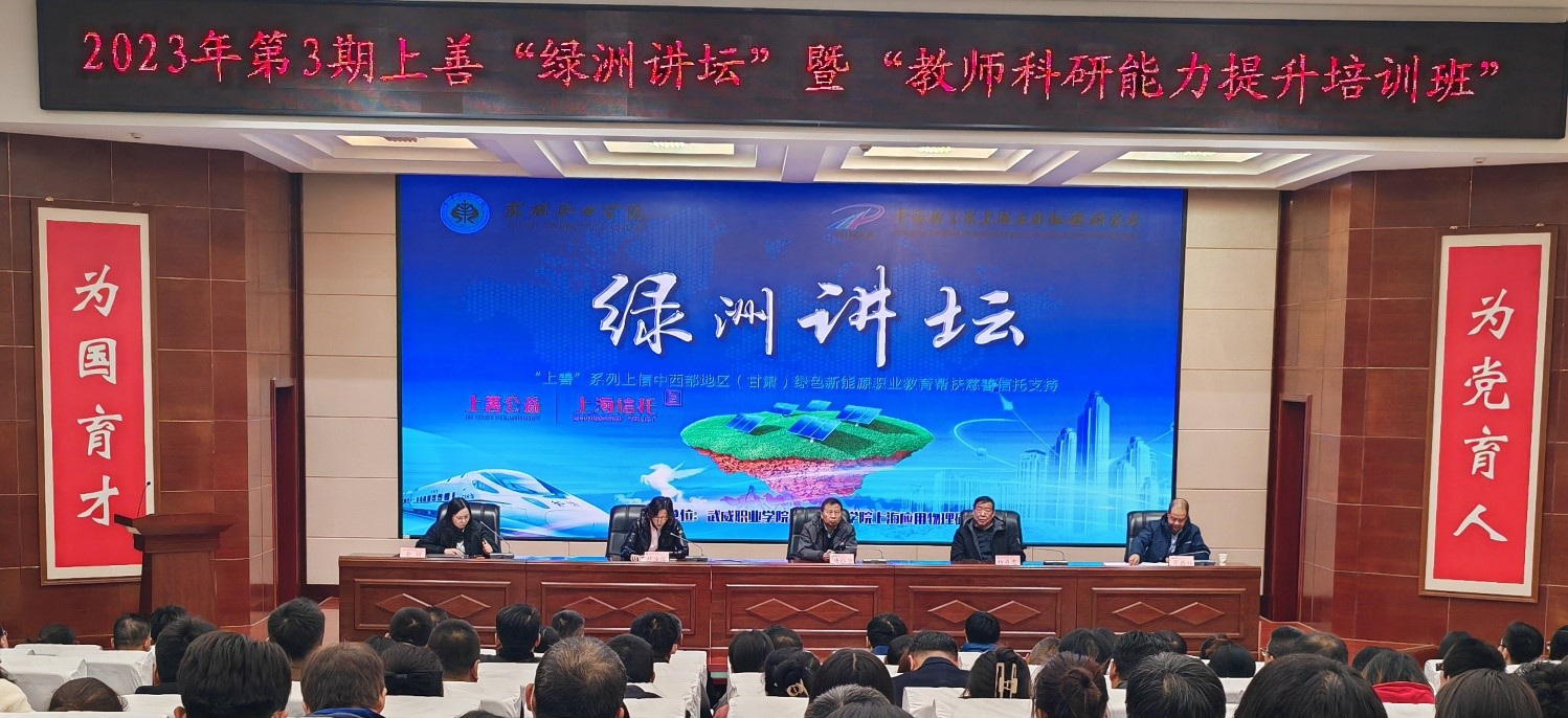 蔡汝溶在致辭中表示,很高興能受邀參加此次“綠洲講壇”,上海“上善”慈善信托與武威職業(yè)學院結(jié)緣于2021年,期間已開展多次綠色新能源職業(yè)教育教師培訓和學生頂崗實習引導活動,本次系列活動面向武威職業(yè)學院及武威中小學開展系列新能源科普講座活動,宣傳國家雙碳與能源安全戰(zhàn)略,不斷擴大公益的受益面,用上海的研究優(yōu)勢服務西部綠色新能源發(fā)展,積極響應國家科技大發(fā)展戰(zhàn)略,助力國家產(chǎn)業(yè)結(jié)構(gòu)的調(diào)整和雙碳目標的實現(xiàn),服務甘肅區(qū)域經(jīng)濟發(fā)展。