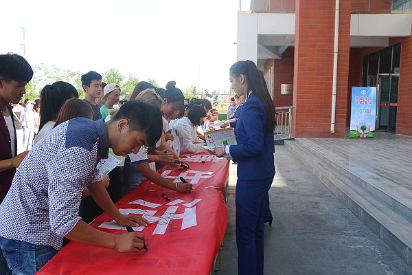 活動(dòng)中,王主瑞介紹了我國禁毒工作的基本情況和面臨的嚴(yán)峻形勢(shì),強(qiáng)調(diào)了青年毒品預(yù)防的重要性。學(xué)生代表王波波宣讀了禁毒倡議書,青年志愿者發(fā)放禁毒宣傳材料2000余份,在場(chǎng)師生在“青春無毒·健康生活”主題條幅上進(jìn)行承諾簽名并觀看了毒品預(yù)防知識(shí)宣傳展板。