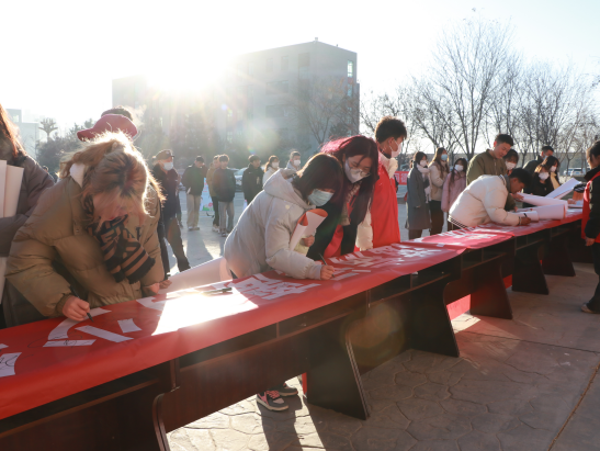 防艾知識宣傳志愿隊伍在大學(xué)生活動中心廣場發(fā)放宣傳手冊,制作并贈送紅絲帶標(biāo)志400余個,活動中對300余名學(xué)生進(jìn)行了免費艾滋病檢測。同學(xué)們一同在宣傳條幅上簽名,祝福語書滿了紅絲帶,一撇一捺、一筆一劃,都是無數(shù)的信念與期望的匯聚,是大家用無聲的行動承諾自己防艾的決心。