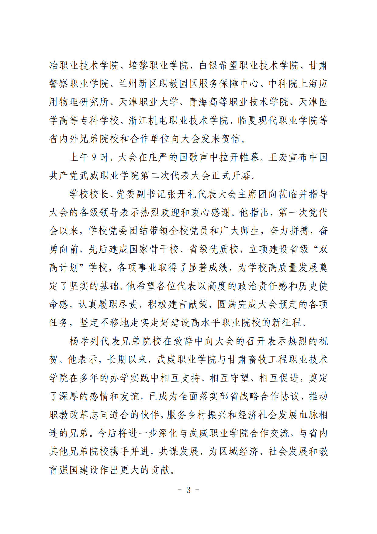 簡報第34期:中國共產(chǎn)黨武威職業(yè)學(xué)院第二次代表大會開幕