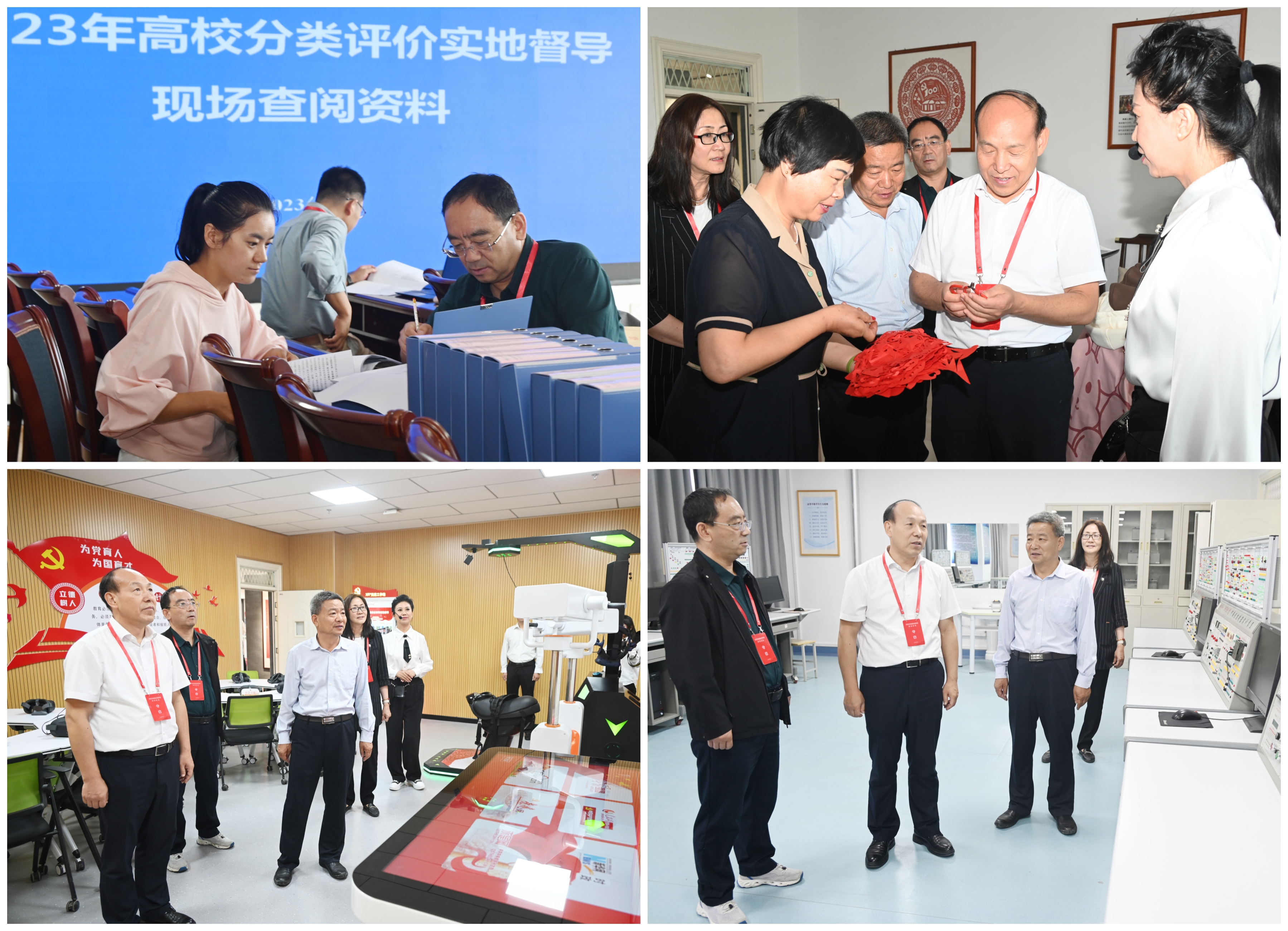 督導(dǎo)期間,專(zhuān)家組現(xiàn)場(chǎng)詳細(xì)查閱了資料,深入我校課程思政教學(xué)研究示范中心、紅色文化藝術(shù)館、名師工作室、傳統(tǒng)文化體驗(yàn)中心、非遺體驗(yàn)中心、VR智慧黨建體驗(yàn)館、運(yùn)動(dòng)場(chǎng)所、學(xué)生食堂、公寓管理中心及中科低碳新能源技術(shù)學(xué)院專(zhuān)業(yè)實(shí)驗(yàn)實(shí)訓(xùn)室等教育教學(xué)、實(shí)驗(yàn)實(shí)訓(xùn)、科研平臺(tái)開(kāi)展實(shí)地考察。