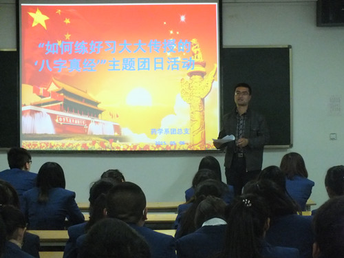 主題團(tuán)會上,系學(xué)生會干部和系團(tuán)干部以及各班學(xué)生代分別就習(xí)總書記的“八字真經(jīng)”的精神通過講故事,說道理等形式進(jìn)行了表達(dá),活動氣氛熱烈,大家踴躍發(fā)言,從生活、學(xué)習(xí)各個方面的小事說起,就“八字真經(jīng)”的內(nèi)涵進(jìn)行了深入的剖析。