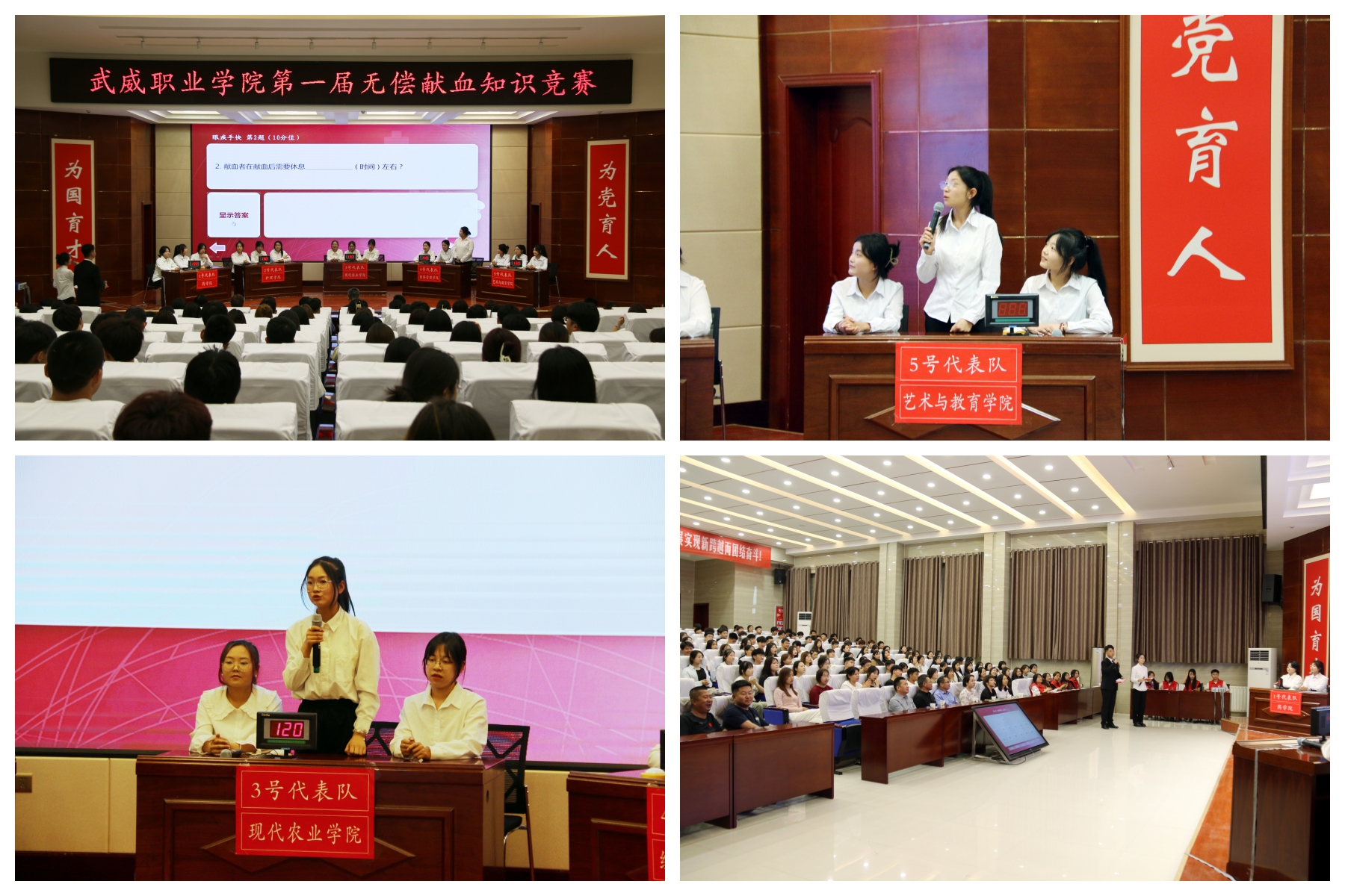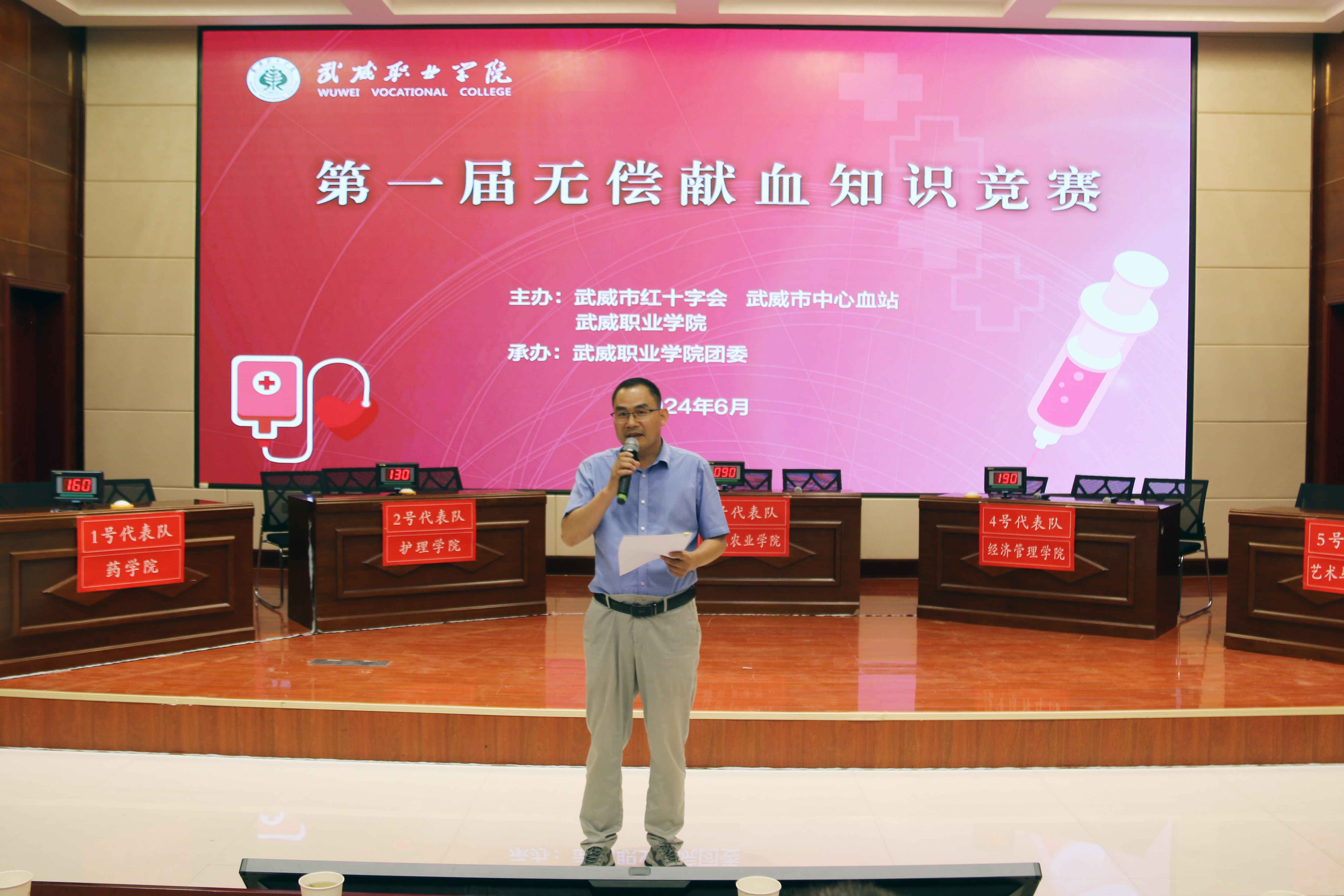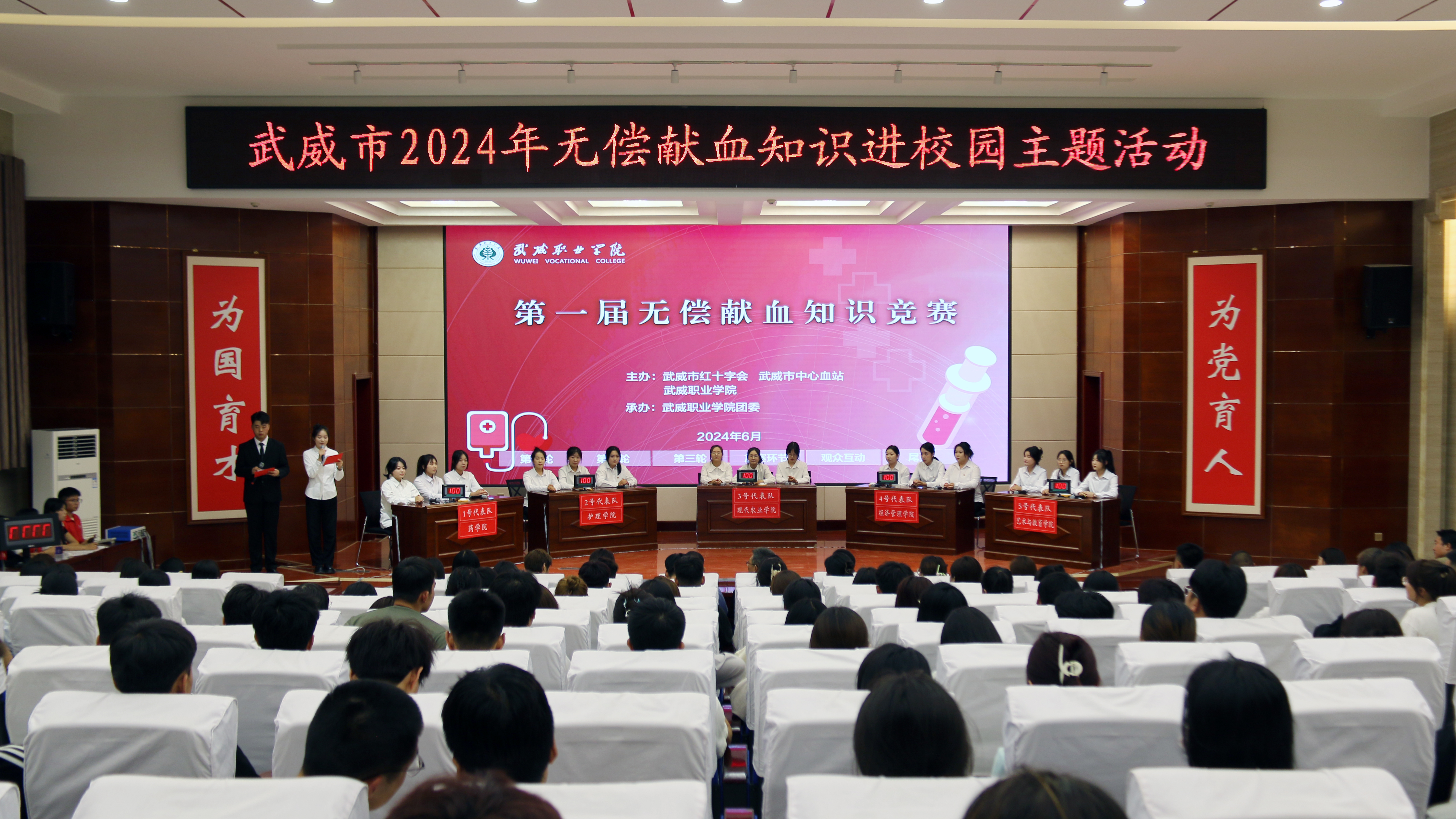 武威市紅十字會(huì)副會(huì)長張勇,武威市中心血站站長王磊,武威市中心血站副站長岳文清,學(xué)校黨委委員、副校長王永緒出席活動(dòng),各二級(jí)學(xué)院的200余名師生觀看比賽。