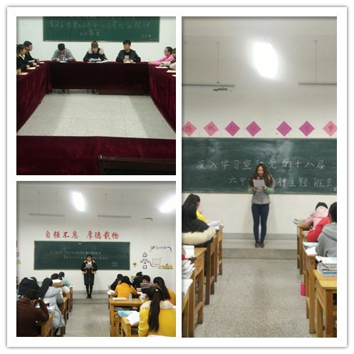 為深入學(xué)習(xí)宣傳十八屆六中全會精神,引導(dǎo)廣大團員青年準確把握全會的精神實質(zhì)和深刻內(nèi)涵,藥學(xué)系團總支結(jié)合兩學(xué)一做學(xué)習(xí)教育和貫徹落實武威市第四次黨代會精神,于12月7日晚,在明遠樓組織各班團支部開展了學(xué)習(xí)黨的十八屆六中全會精神主題團會。團會由各班團支部書記主持,會議傳達了十八屆六中全會精神和武威市第四次黨代會精神,領(lǐng)學(xué)了《中國共產(chǎn)黨第十八屆中央委員會第六次全體會議公報》內(nèi)容。