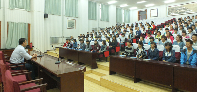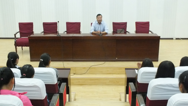 上午八點,本系新生入學教育如期舉行。蔡柱山向各位新生介紹藥學系基本慨況,并為剛剛踏入大學的同學們指引學習方向,學習要靠自覺,不要荒廢了三年的寶貴時間,從現(xiàn)在開始,從大一開始艱苦磨練。還提出同學們要向德、智、體方向全面發(fā)展的期望。
