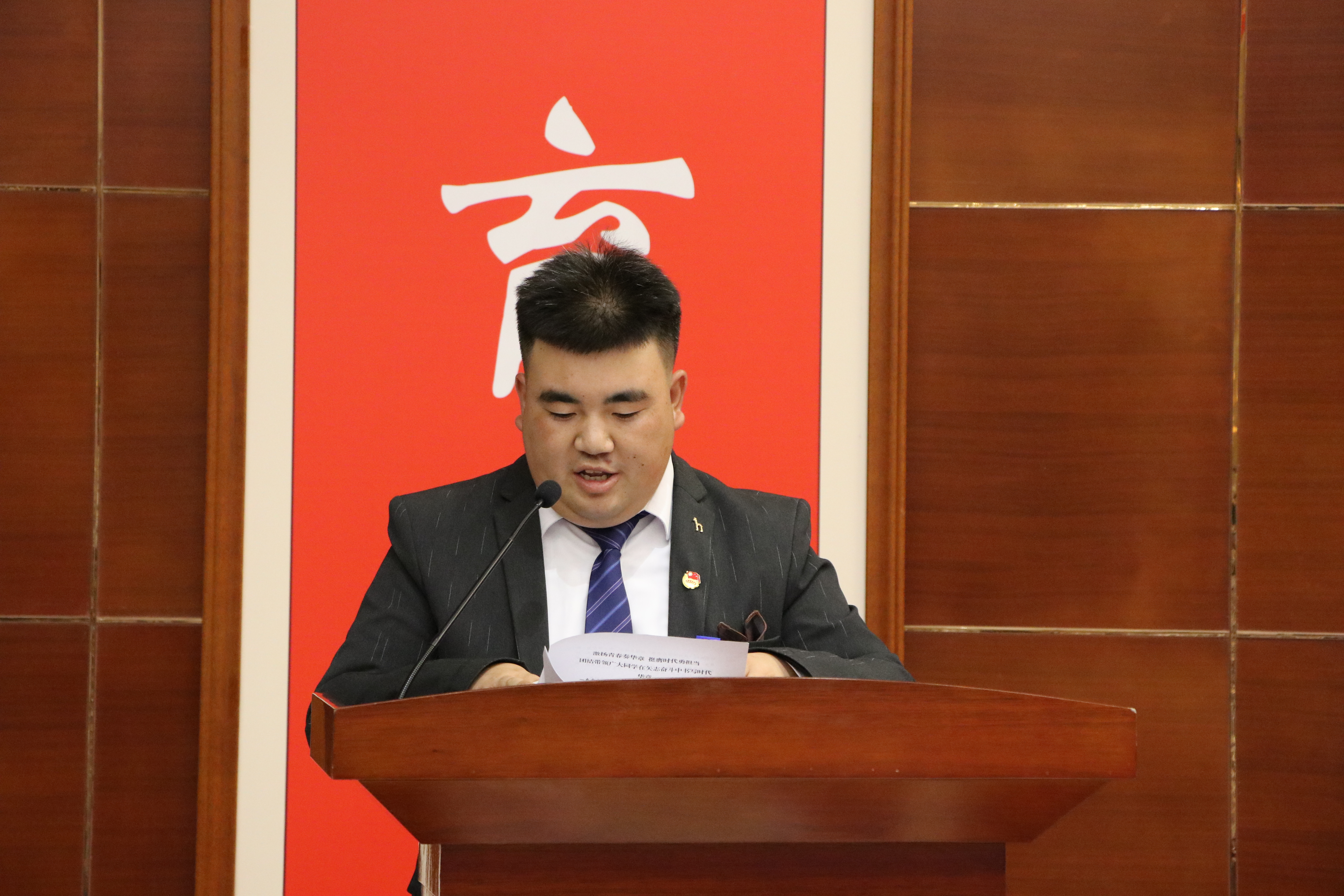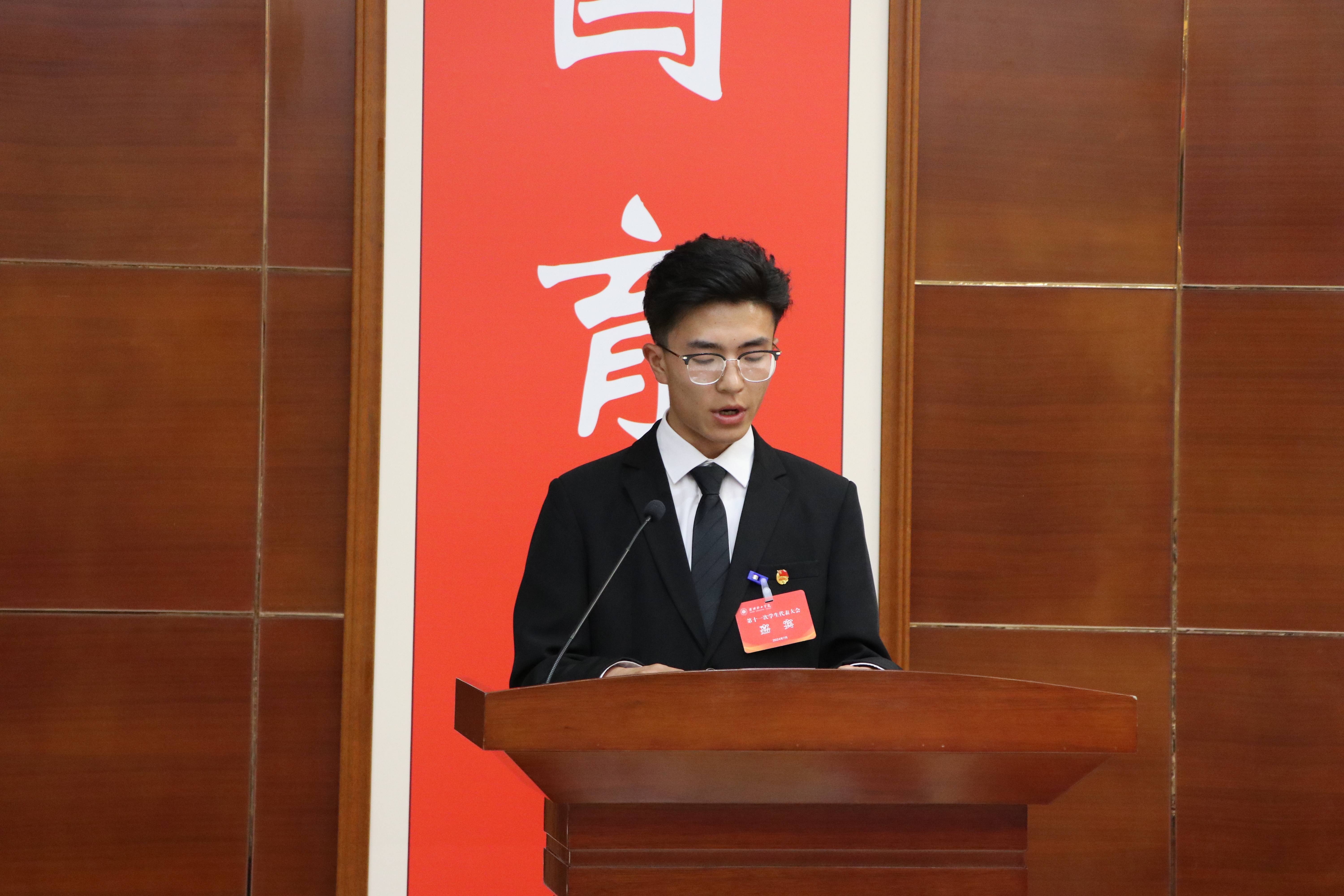 學校學生會主席團成員虎梁才同學代表第十屆學生會委員會向大會作題為《激揚青春奏華章,挺膺時代勇?lián)?,團結帶領廣大同學在矢志奮斗中書寫時代華章》的工作報告。
