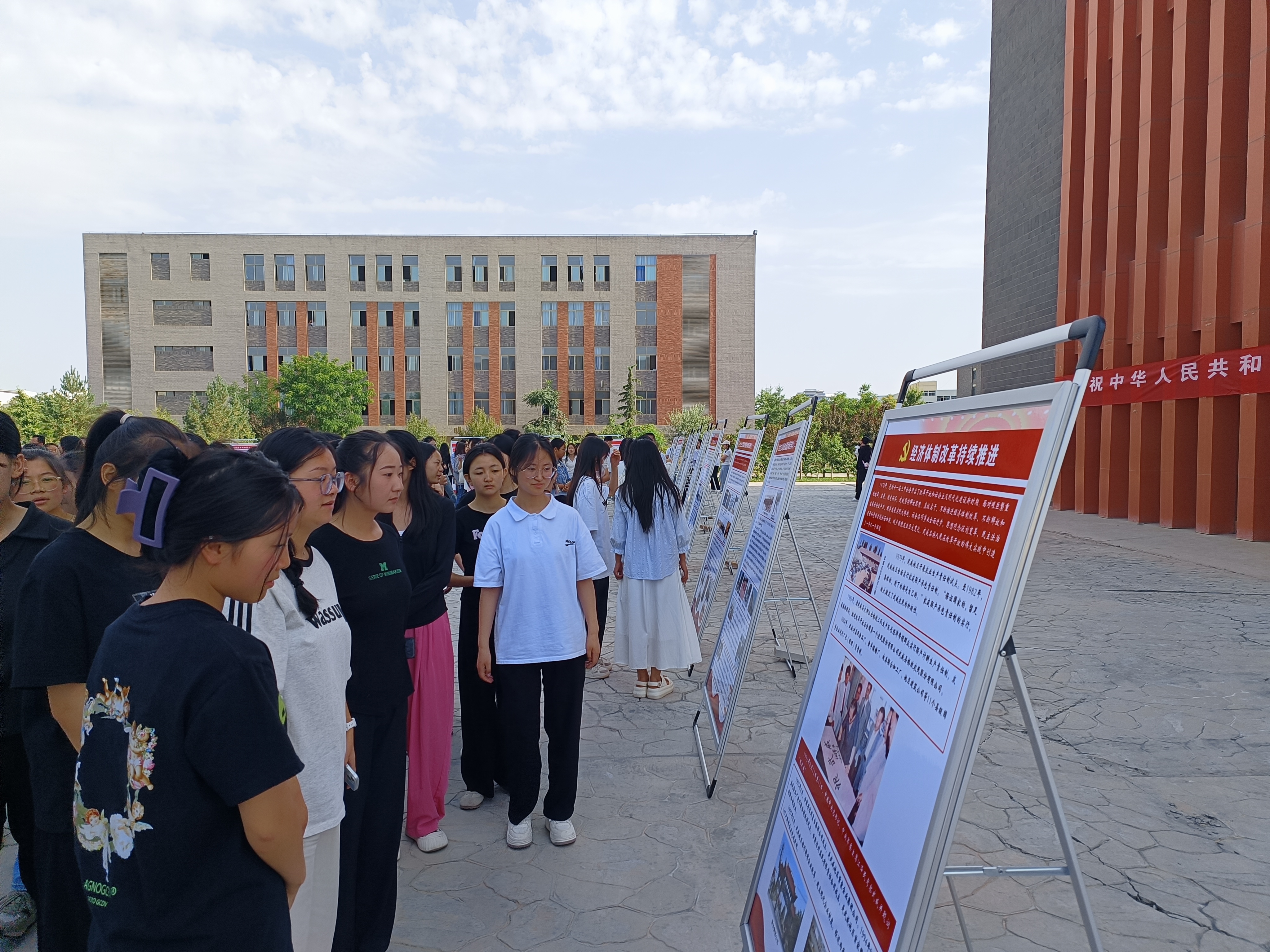 講座結(jié)束后,學(xué)校師生在學(xué)生發(fā)展中心廣場(chǎng)參觀了由市委黨史和地方志研究中心承辦的“慶祝中華人民共和國(guó)成立75周年武威黨史展覽”,通過(guò)鮮活的武威黨史故事,一份份翔實(shí)的檔案資料,一組組生動(dòng)的圖片資料,不僅記錄了老一輩革命家,艱苦奮斗的人生經(jīng)歷,更傳承著我們黨永遠(yuǎn)不變的初心使命。師生們紛紛表示要把學(xué)黨史、用黨史作為終身必修課,增強(qiáng)學(xué)習(xí)的思想自覺(jué)和行動(dòng)自覺(jué),推動(dòng)黨史學(xué)習(xí)教育融入日常、抓在經(jīng)常,從黨的歷史中汲取奮進(jìn)力量,自覺(jué)把黨史學(xué)習(xí)教育成果轉(zhuǎn)化為推動(dòng)學(xué)習(xí)工作的強(qiáng)大動(dòng)力。