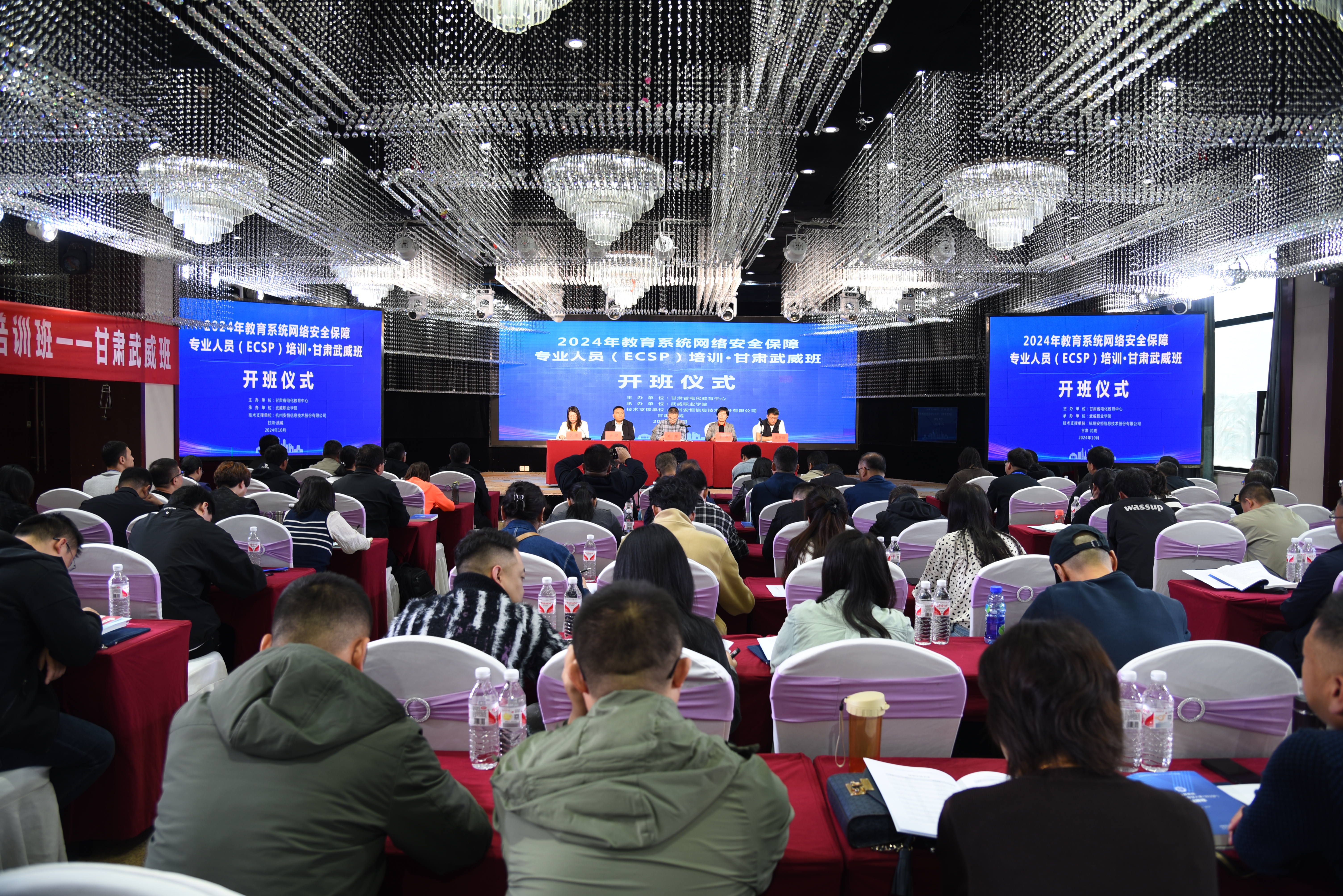 2024年10月15日,由甘肅省電化教育中心主辦,我校承辦的教育部2024年教育系統(tǒng)網(wǎng)絡(luò)安全保障專業(yè)人員(ECSP)培訓(xùn)班順利開班,來自省內(nèi)外各級教育行政部門及其直屬單位、高等院校和其他教育機(jī)構(gòu)的90余名網(wǎng)絡(luò)安全和信息化從業(yè)人員參加培訓(xùn)。甘肅省電化教育中心主任梁翔,學(xué)校黨委委員、副校長何毅出席開班式,甘肅省電化教育中心科長伏蓉主持開班式。