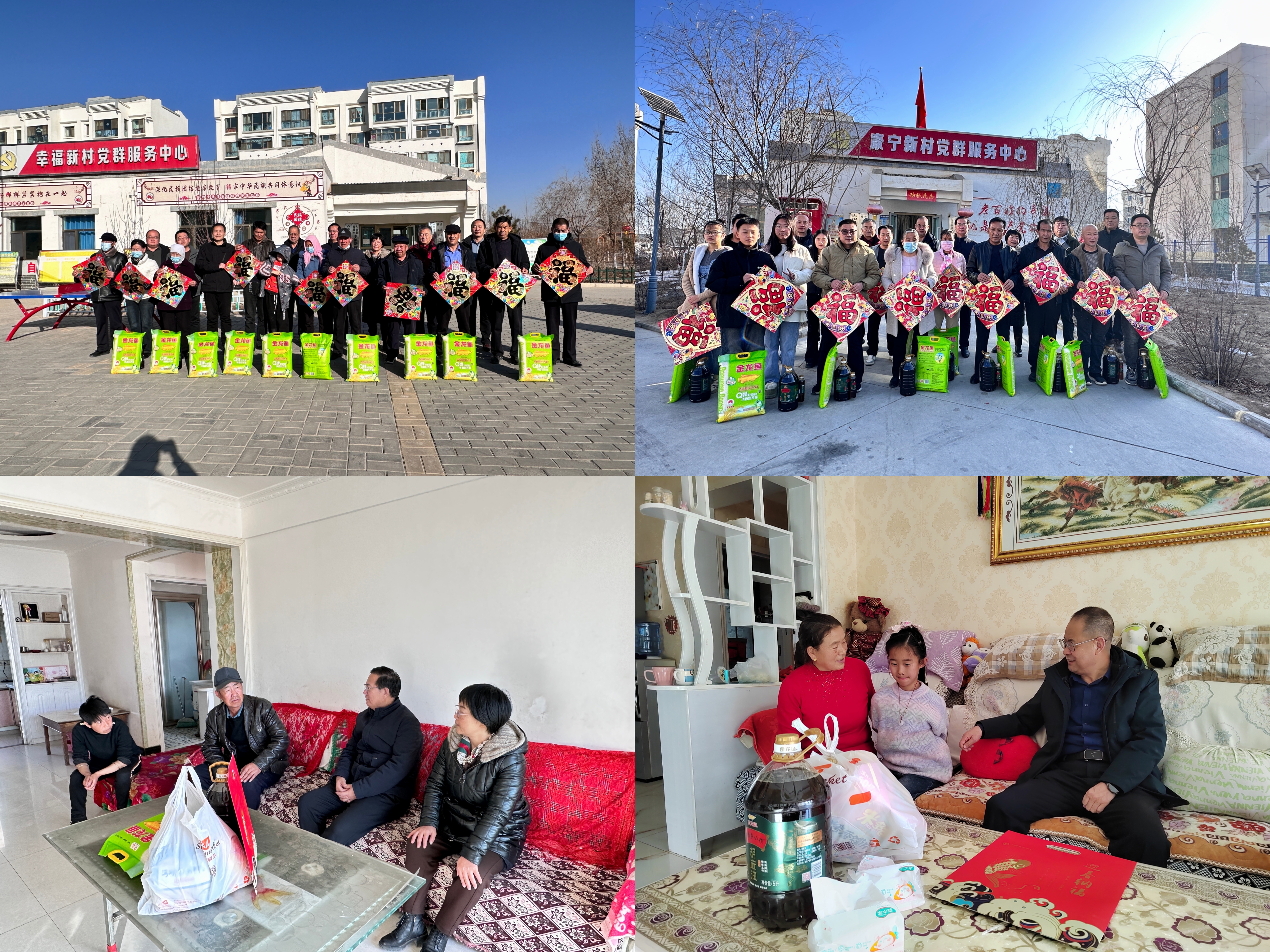 1月22日,學校在古浪縣橫梁鄉(xiāng)康寧新村、幸福新村開展春節(jié)前走訪慰問和送溫暖、送春聯(lián)、送祝?;顒印|h委副書記、副校長張開禮,黨委副書記翟存祥,副校長何毅帶隊到村,與橫梁鄉(xiāng)政府和2個村委會相關同志就加快推進鄉(xiāng)村振興開展共同研究,就來年幫扶工作作了對接溝通。校領導為困難群眾、結對幫扶戶、駐村工作隊送上春聯(lián)、福字、窗花、大米、胡麻油等慰問品,并開展文化共建,將學校的關心關愛傳遞到了基層群眾心里,進一步豐富了群眾精神文化生活,營造了祥和、喜慶的節(jié)日氛圍。