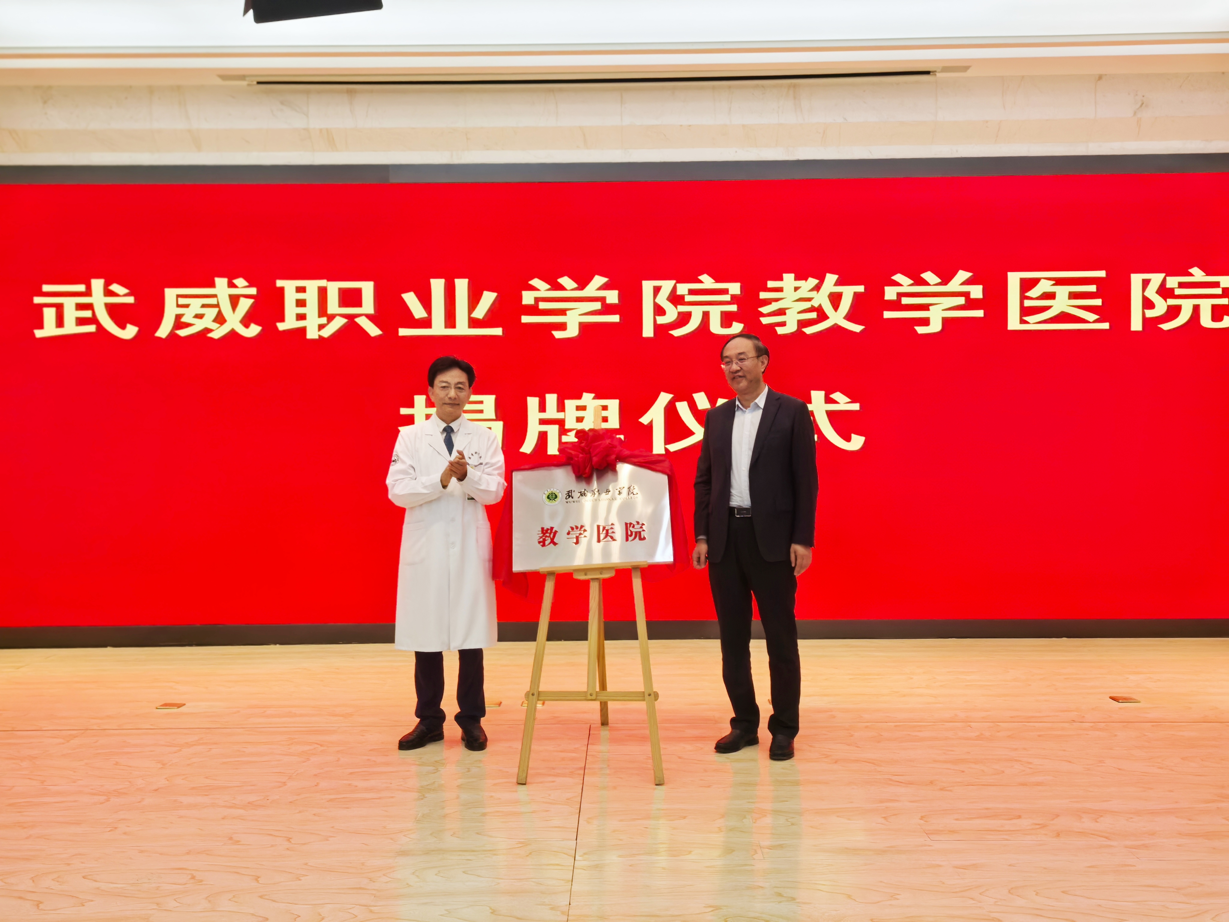 王宏和葉延程為“武威職業(yè)學(xué)院教學(xué)醫(yī)院”揭牌