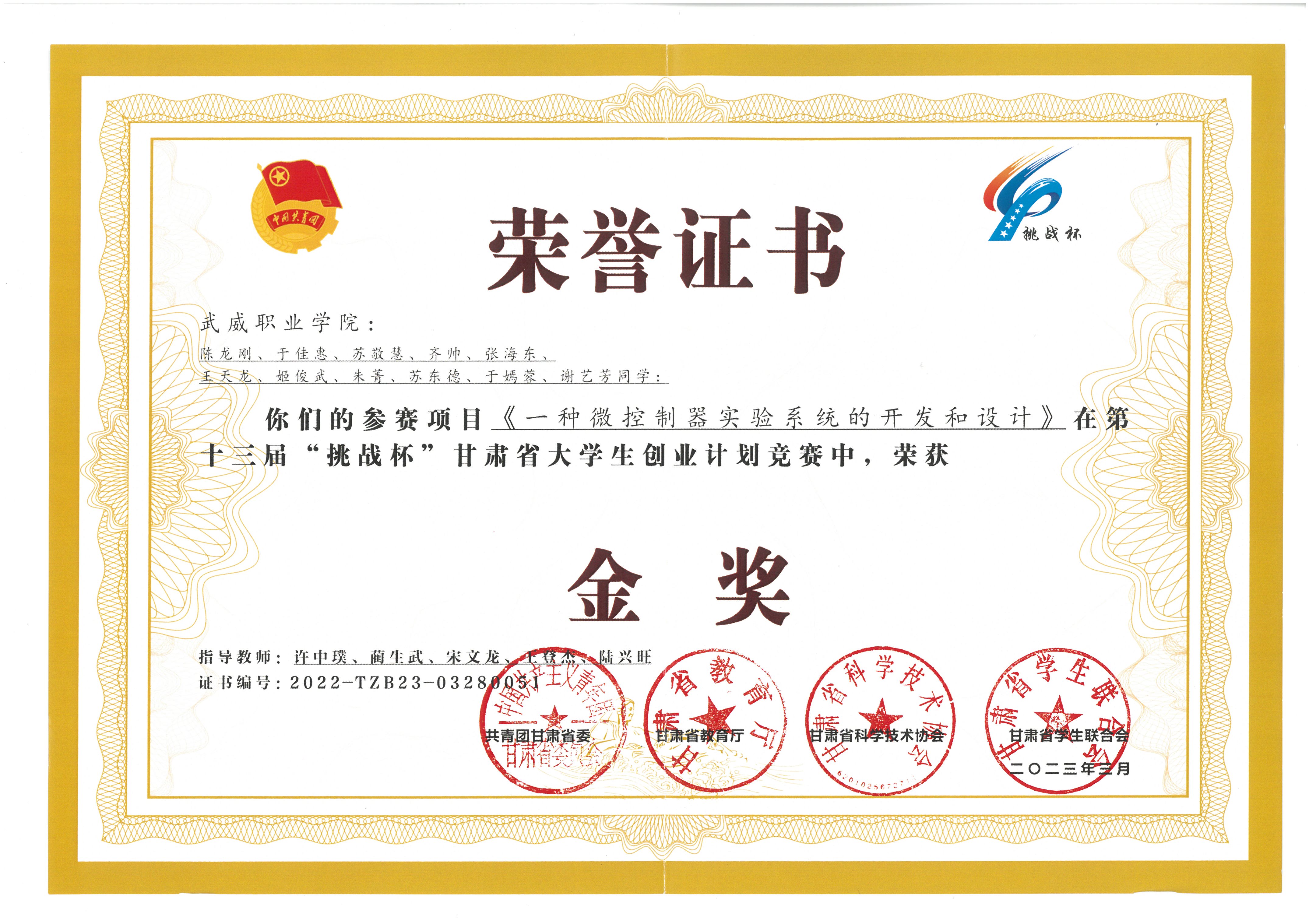 2023年十三屆挑戰(zhàn)杯甘肅省大學生創(chuàng)業(yè)計劃金獎