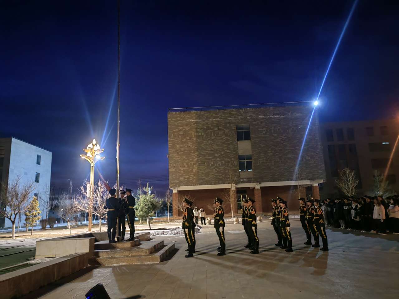 12月16日,信息技術學院全體師生齊聚在圖書館廣場舉行升國旗儀式。