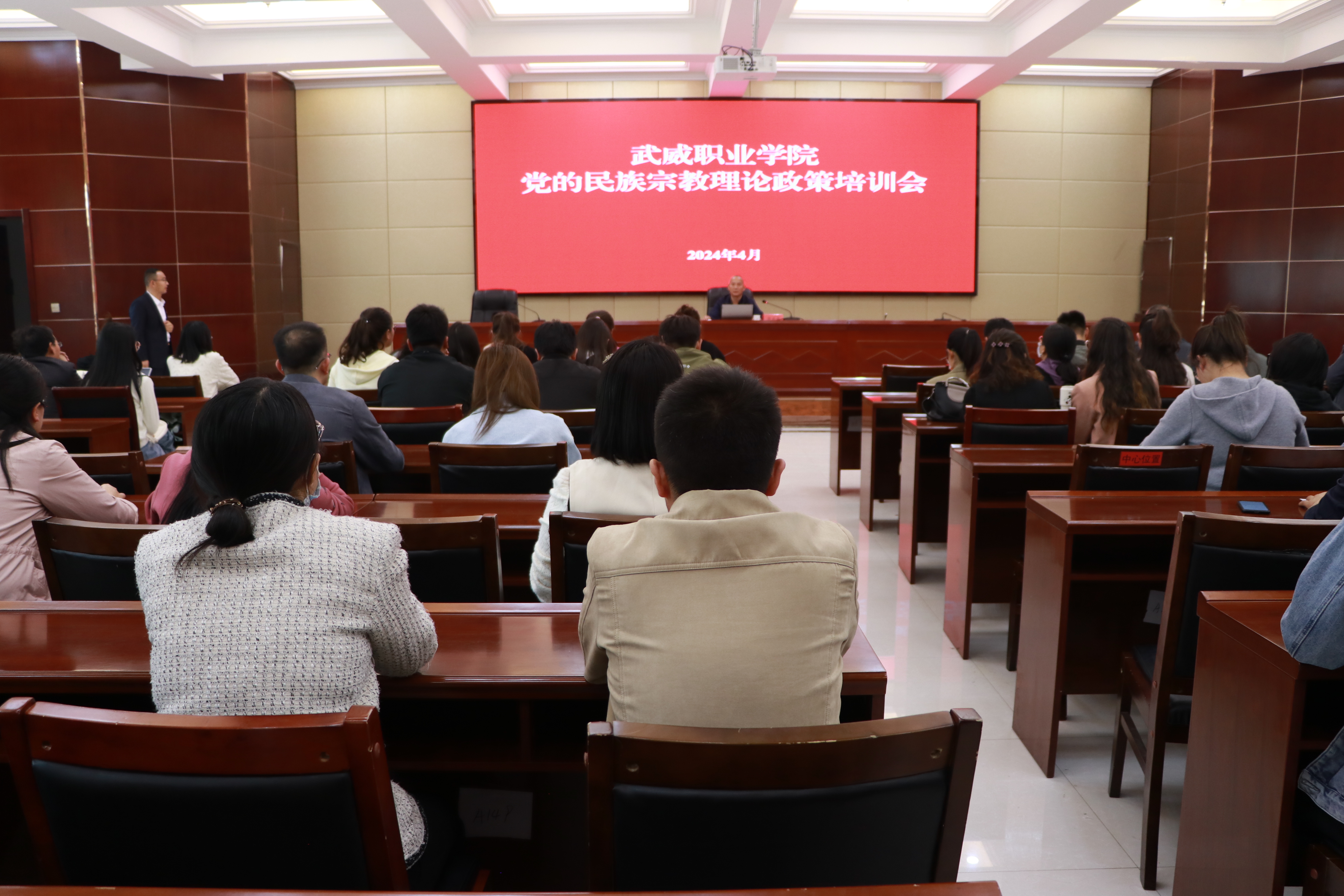 為引導各民族學習宣傳貫徹黨的二十大精神和習近平總書記關于加強和改進民族工作的重要思想,扎實開展第21個民族團結進步宣傳月活動,推動全校師生全力做好鑄牢中華民族共同體意識宣傳教育、加強民族團結進步創(chuàng)建,4月26日下午,學校在行樹樓北側報告廳舉行黨的民族宗教理論政策培訓會。宣傳統(tǒng)戰(zhàn)部全體人員、馬克思主義學院選派的部分思政課教師、各二級學院輔導員、班主任代表等100余人參加培訓會。