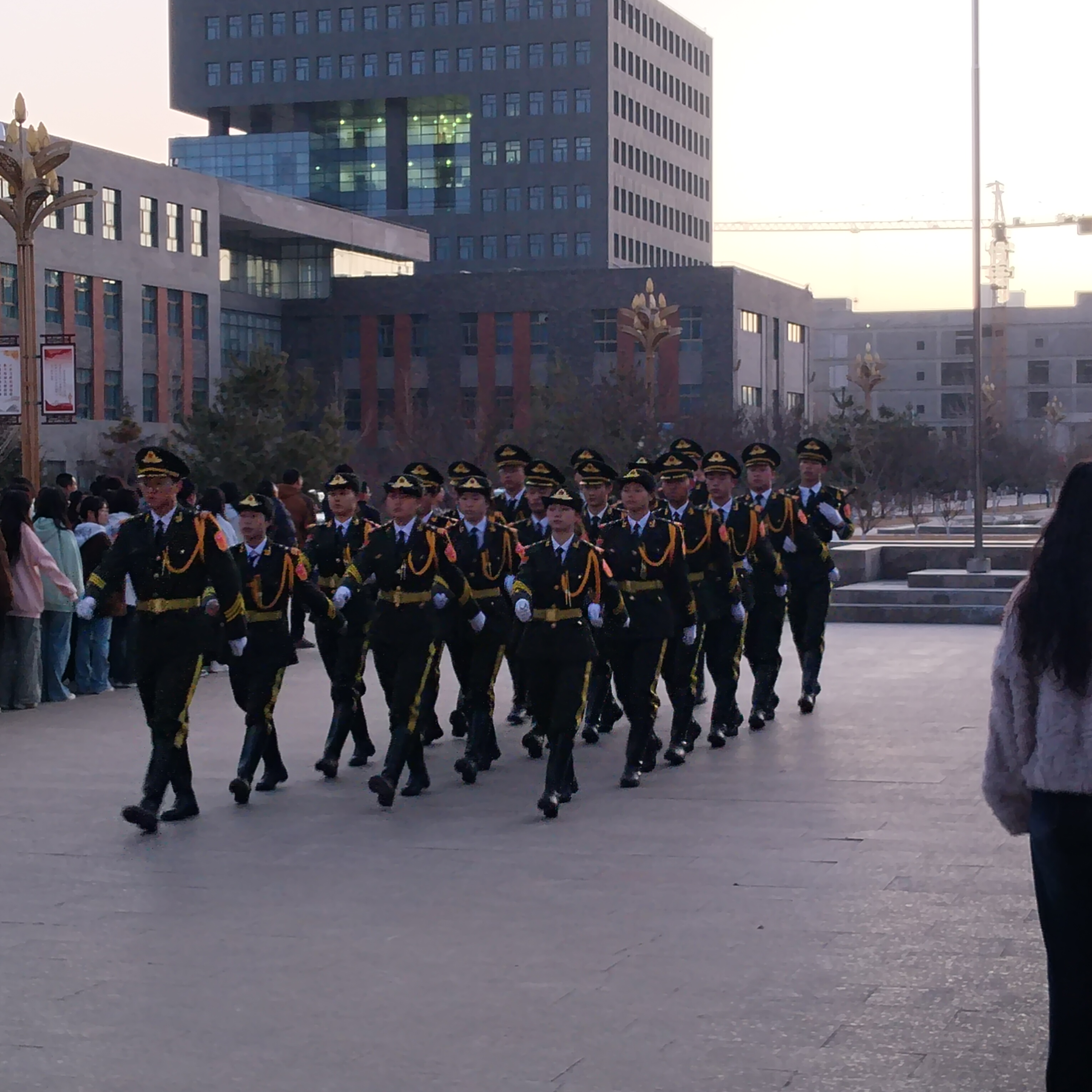 早上7點15分,護旗手邁著鏗鏘有力的步伐護送國旗入場。伴隨著激昂雄壯的《義勇軍進行曲》,五星紅旗緩緩升起,全體師生莊嚴肅立,向國旗行注目禮,齊唱國歌,現(xiàn)場氣氛莊重而熱烈。