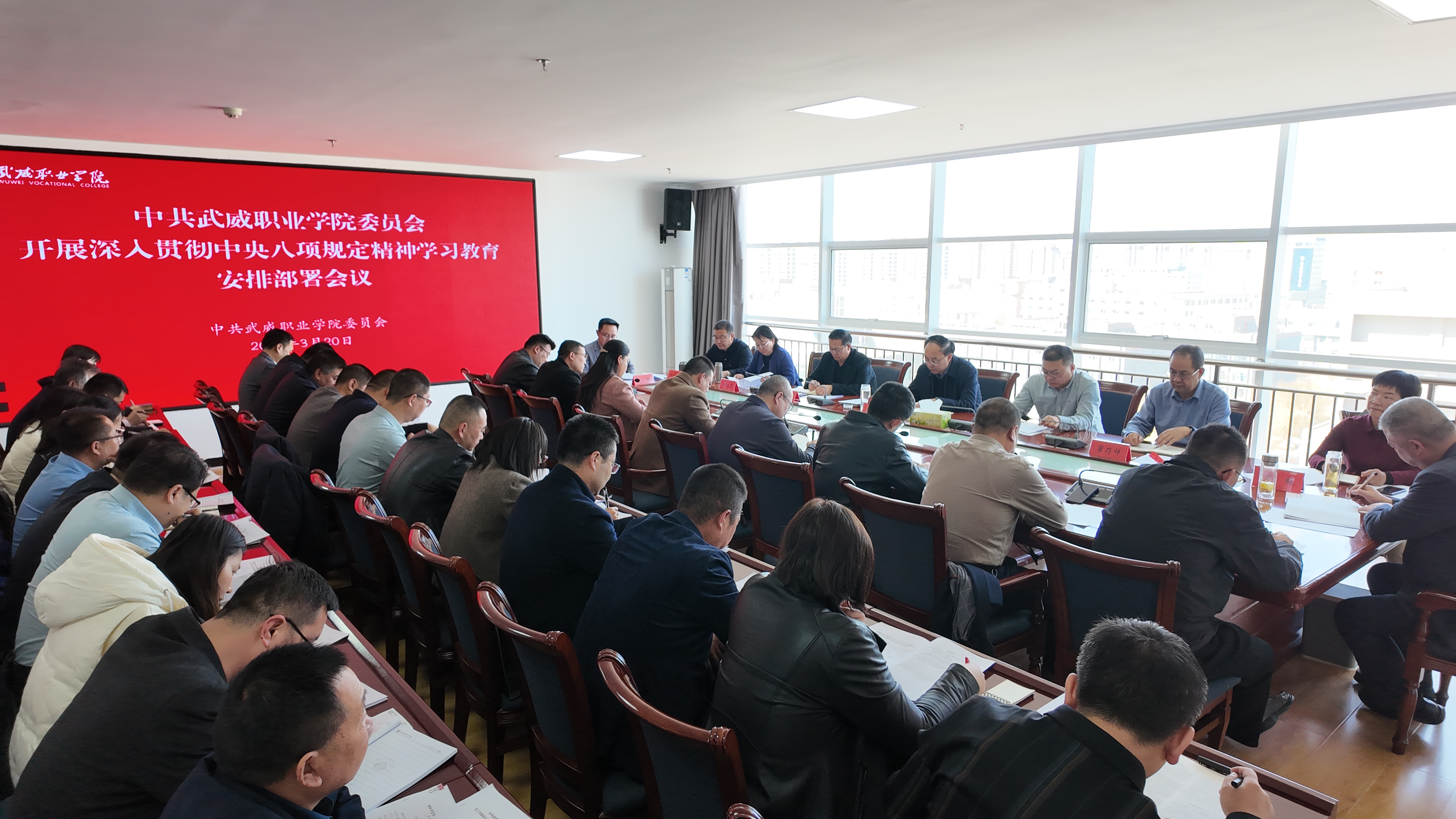 3月20日,學(xué)校黨委召開深入貫徹中央八項(xiàng)規(guī)定精神學(xué)習(xí)教育安排部署會(huì)議,認(rèn)真學(xué)習(xí)貫徹習(xí)近平總書記關(guān)于深入貫徹中央八項(xiàng)規(guī)定精神學(xué)習(xí)教育的重要講話和重要指示批示精神,對(duì)全校開展學(xué)習(xí)教育進(jìn)行全面安排部署。會(huì)議由黨委書記王宏主持,學(xué)校黨委領(lǐng)導(dǎo)班子成員,各基層黨組織書記,各部門負(fù)責(zé)人參加會(huì)議,校長(zhǎng)李海軍列席會(huì)議。