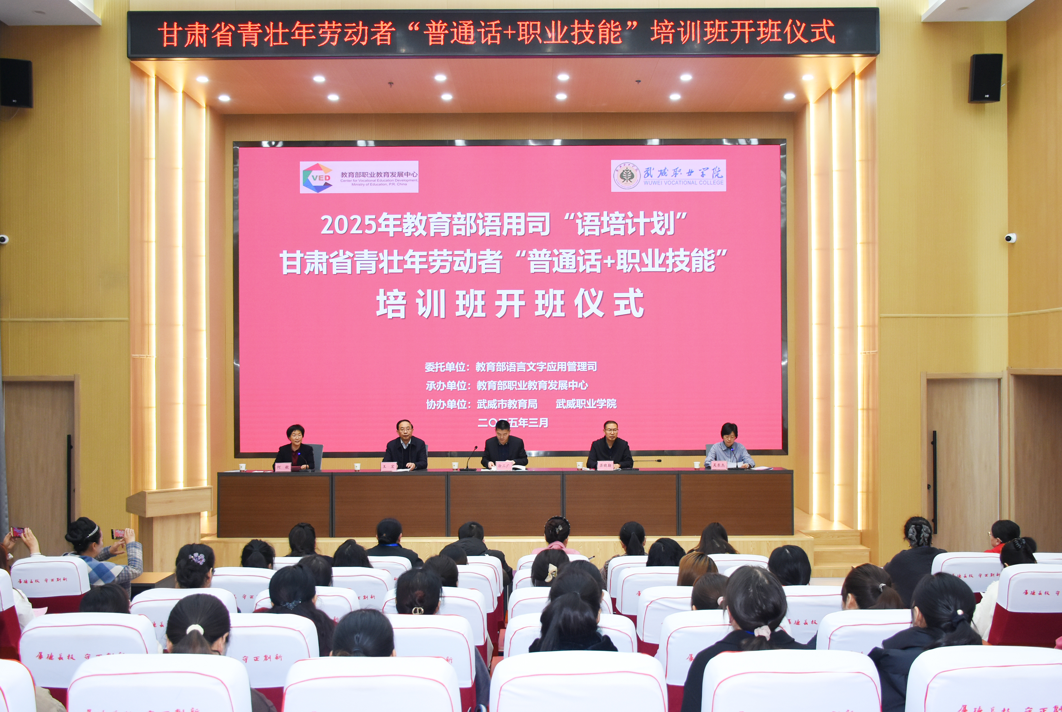 3月25日,教育部語用司“語培計(jì)劃”甘肅省青壯年勞動者“普通話+職業(yè)技能”培訓(xùn)班在學(xué)校成功開班。本次培訓(xùn)由教育部語用司主辦,教育部職業(yè)教育發(fā)展中心承辦,武威市教育局和學(xué)校協(xié)辦。本次培訓(xùn)是深入貫徹落實(shí)黨的二十大和二十屆二中、三中全會精神,落實(shí)全國教育大會精神,實(shí)施《教育強(qiáng)國建設(shè)規(guī)劃綱要(2024-2035年)》的重要舉措,旨在進(jìn)一步推廣國家通用語言文字的應(yīng)用,促進(jìn)鑄牢中華民族共同體意識。