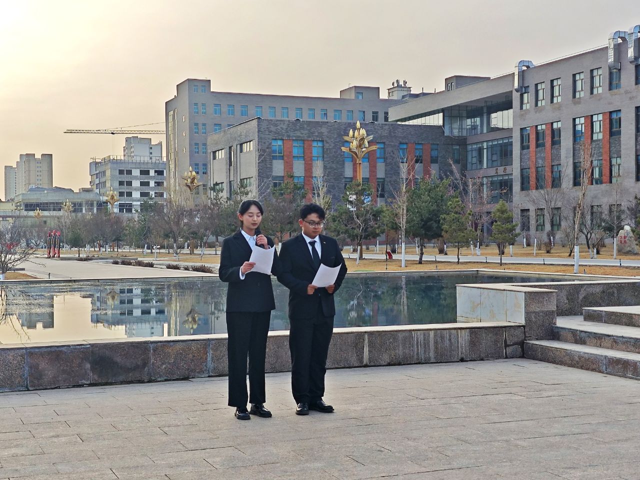 ?2025年3月31日早上,藥學(xué)院全體師生在圖書館前廣場(chǎng)舉行升國(guó)旗儀式。