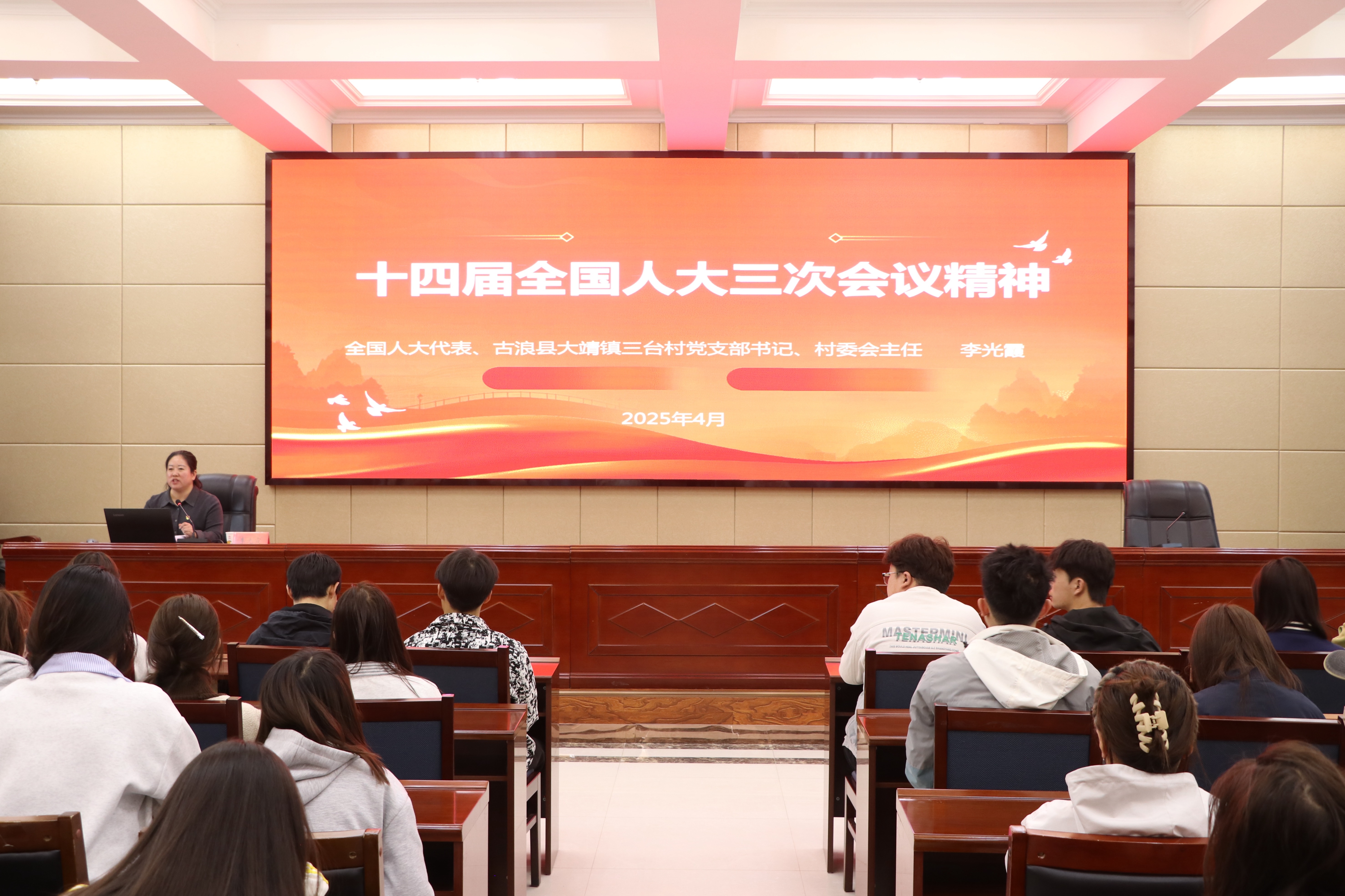 宣講會上,李光霞以《十四屆全國人大三次會議精神》為主題,結(jié)合自身日常工作與履職經(jīng)歷,從2025年全國兩會基本情況、甘肅省代表團履職情況等方面入手,用通俗易懂的語言匯報了全國兩會的重要內(nèi)容。宣講報告主題鮮明、站位高遠、內(nèi)容豐富、系統(tǒng)全面,既有理論的高度,使廣大師生深刻領(lǐng)會到兩會精神的重大意義和豐富內(nèi)涵;又有實踐的深度,體現(xiàn)出“人民代表為人民”的職責使命與責任擔當。