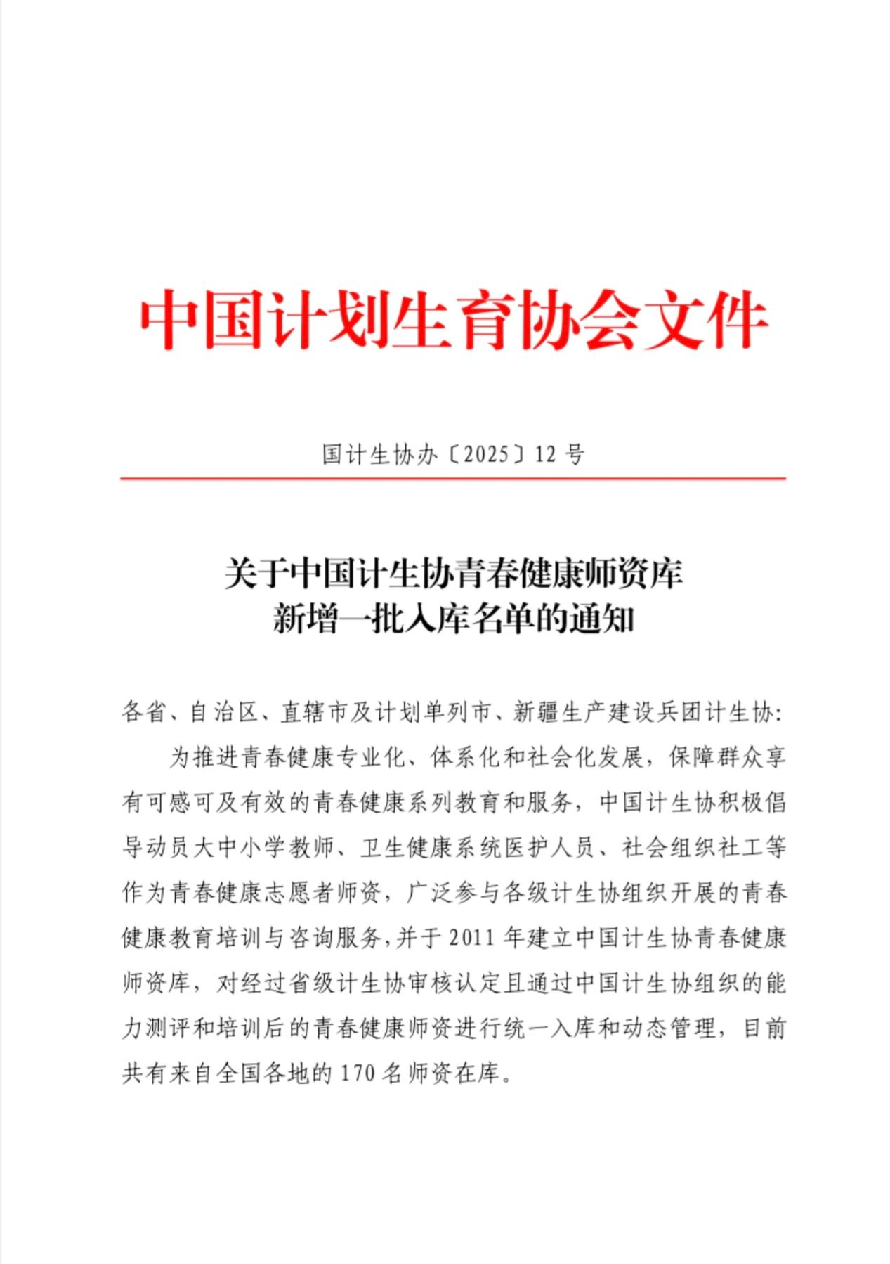 近日,中國(guó)計(jì)生協(xié)下發(fā)了《關(guān)于中國(guó)計(jì)生協(xié)青春健康師資庫(kù)新增一批入庫(kù)名單的通知》(國(guó)計(jì)生協(xié)辦〔2025〕12號(hào)),我會(huì)推薦的武威職業(yè)學(xué)院孔慶亮老師脫穎而出,成功入選中國(guó)計(jì)生協(xié)青春健康師資庫(kù),成為甘肅省第二位國(guó)家級(jí)青春健康主持人。參加此次師資認(rèn)證的有來(lái)自全國(guó)20個(gè)省(區(qū)、市)推薦的105名優(yōu)秀師資,在中國(guó)計(jì)生協(xié)設(shè)置的筆試、現(xiàn)場(chǎng)微課和面試問(wèn)答等三個(gè)環(huán)節(jié)的層層選拔下,最終僅有33名師資成功入選。