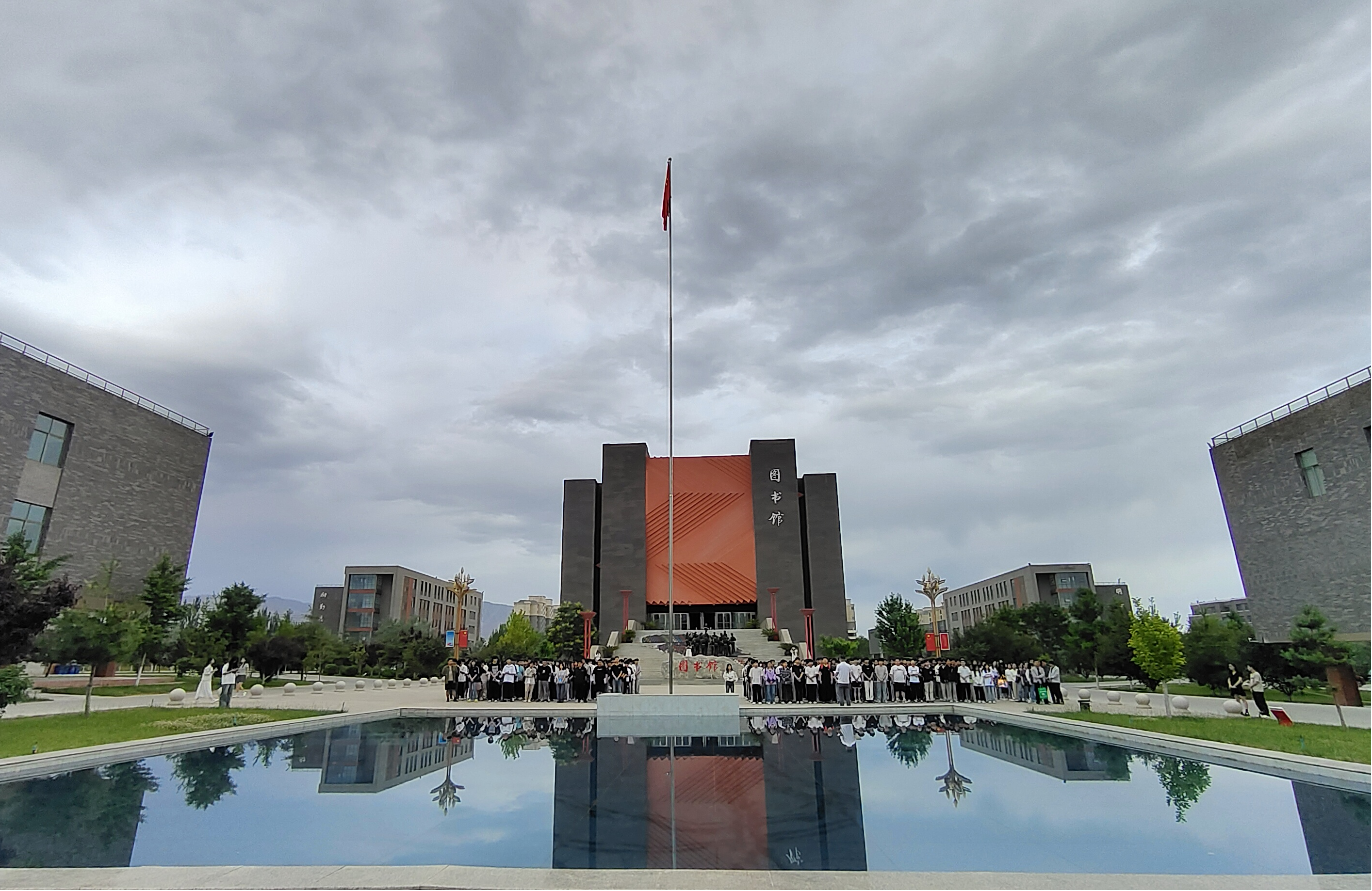 6月9日,信息技術學院齊聚在圖書館前廣場舉行升國旗儀式。