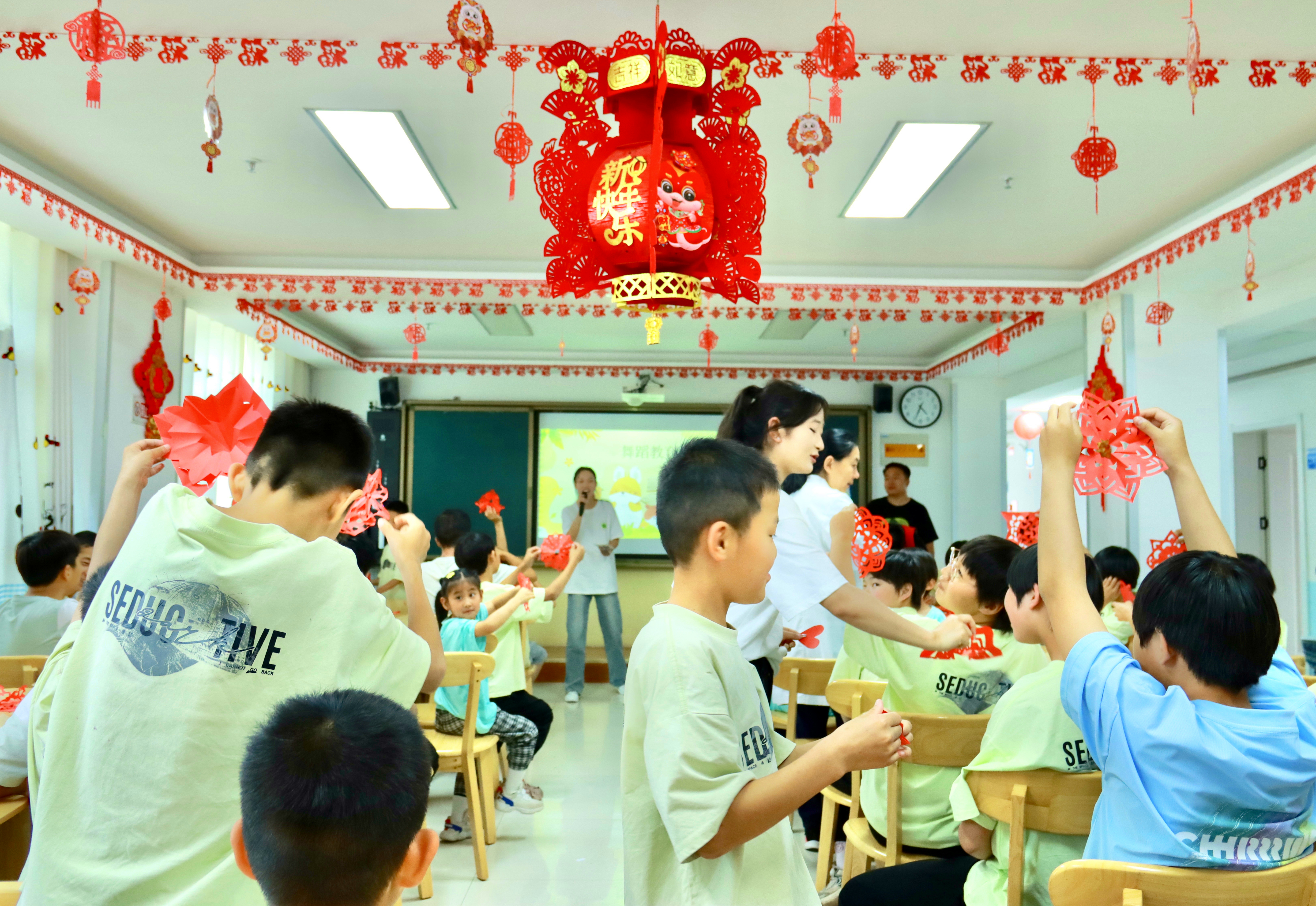 走進(jìn)福利院,志愿者與小朋友們暖心互動,剪紙課上,彩紙?jiān)谥讣夥w,剪出的圖案化作聲聲祝福,在培養(yǎng)孩子們的動手實(shí)踐能力的同時,更在美感體驗(yàn)中將非遺傳承的種子種在心里,開出燦爛的花。手拍鼓前,節(jié)奏與歡笑交織,隨著鼓點(diǎn)的律動,輕快的旋律敲出滿室溫馨。就連平日里略顯枯燥的科普小知識,也被志愿者們講成了一個個“溫暖故事”?;顒幼詈?,志愿者們拿出提前準(zhǔn)備好的小禮物分發(fā)給每個孩子,收到禮物的孩子們露出了燦爛的笑容,這份溫暖在彼此心間久久回蕩。