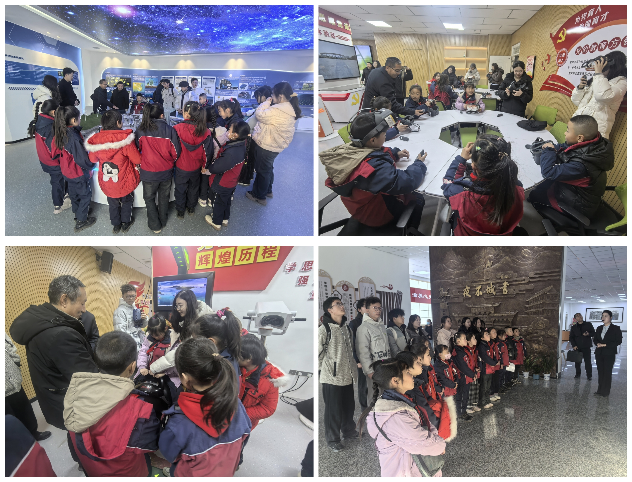 共建簽約儀式后,學(xué)生們參觀了學(xué)校圖書館、新能源科技館、課程思政教學(xué)研究示范中心等場(chǎng)館。孩子們穿梭于書香四溢的閱覽區(qū),駐足于各種先進(jìn)的模型與互動(dòng)裝置前,直觀感受VR技術(shù)賦能思政課堂的創(chuàng)新魅力,眼神中充滿了對(duì)知識(shí)的渴望與探索,這次參觀不僅是一次校園環(huán)境體驗(yàn),更是一次深刻的“潤(rùn)物細(xì)無聲”思政教育,在孩子們心中播下了求知與創(chuàng)新的種子。