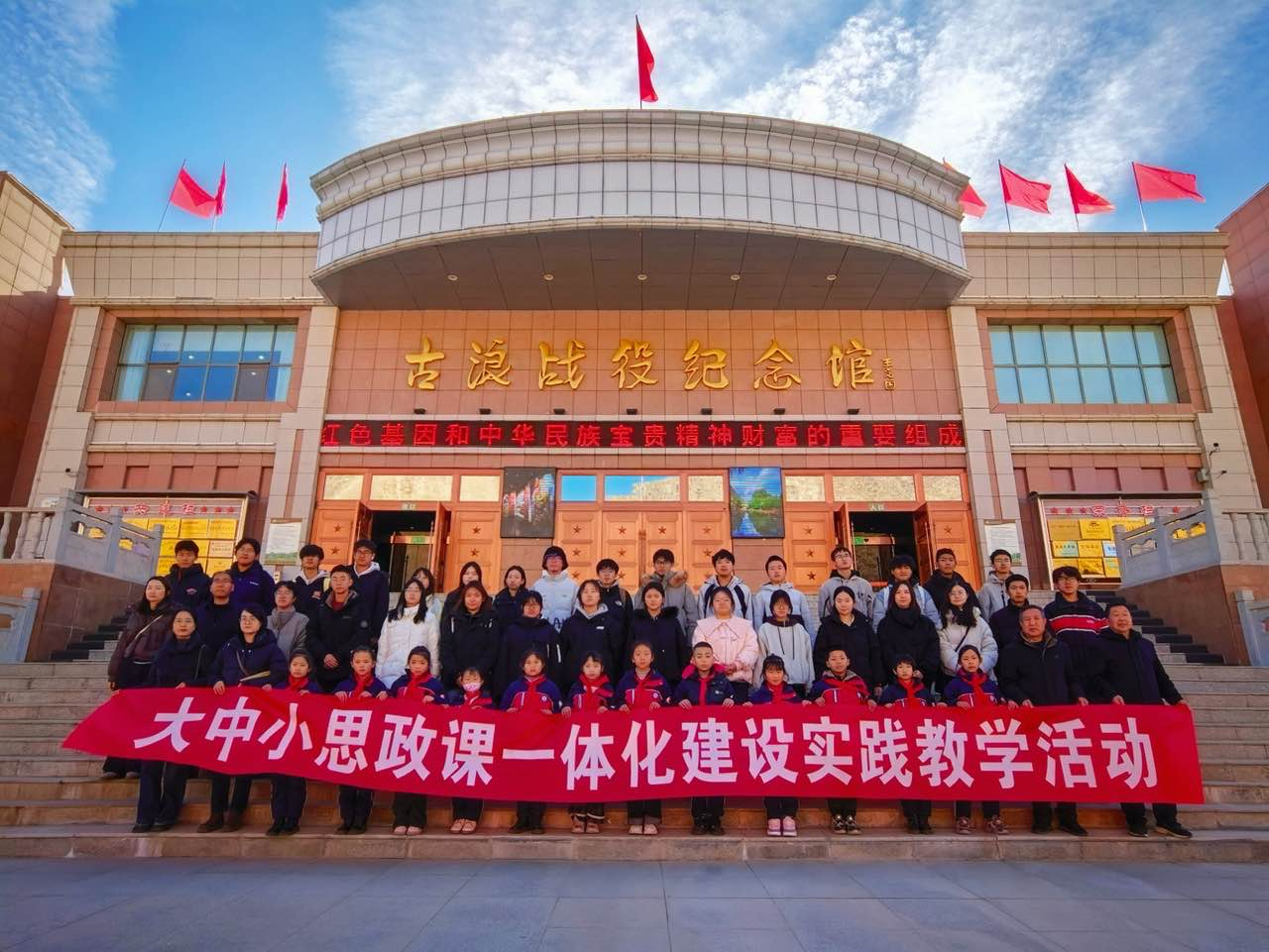 校園參觀結(jié)束,雙方共同前往學(xué)?!按笏颊n”實(shí)踐教學(xué)基地---古浪戰(zhàn)役紀(jì)念館,開展了一場(chǎng)生動(dòng)而深刻的“大思政課”實(shí)踐教學(xué)活動(dòng)。在莊嚴(yán)肅穆的紀(jì)念館內(nèi),全體人員通過觀看歷史文物、聆聽現(xiàn)場(chǎng)講解、緬懷革命先烈,深刻感悟了紅色江山的來之不易,接受了偉大的革命精神洗禮。